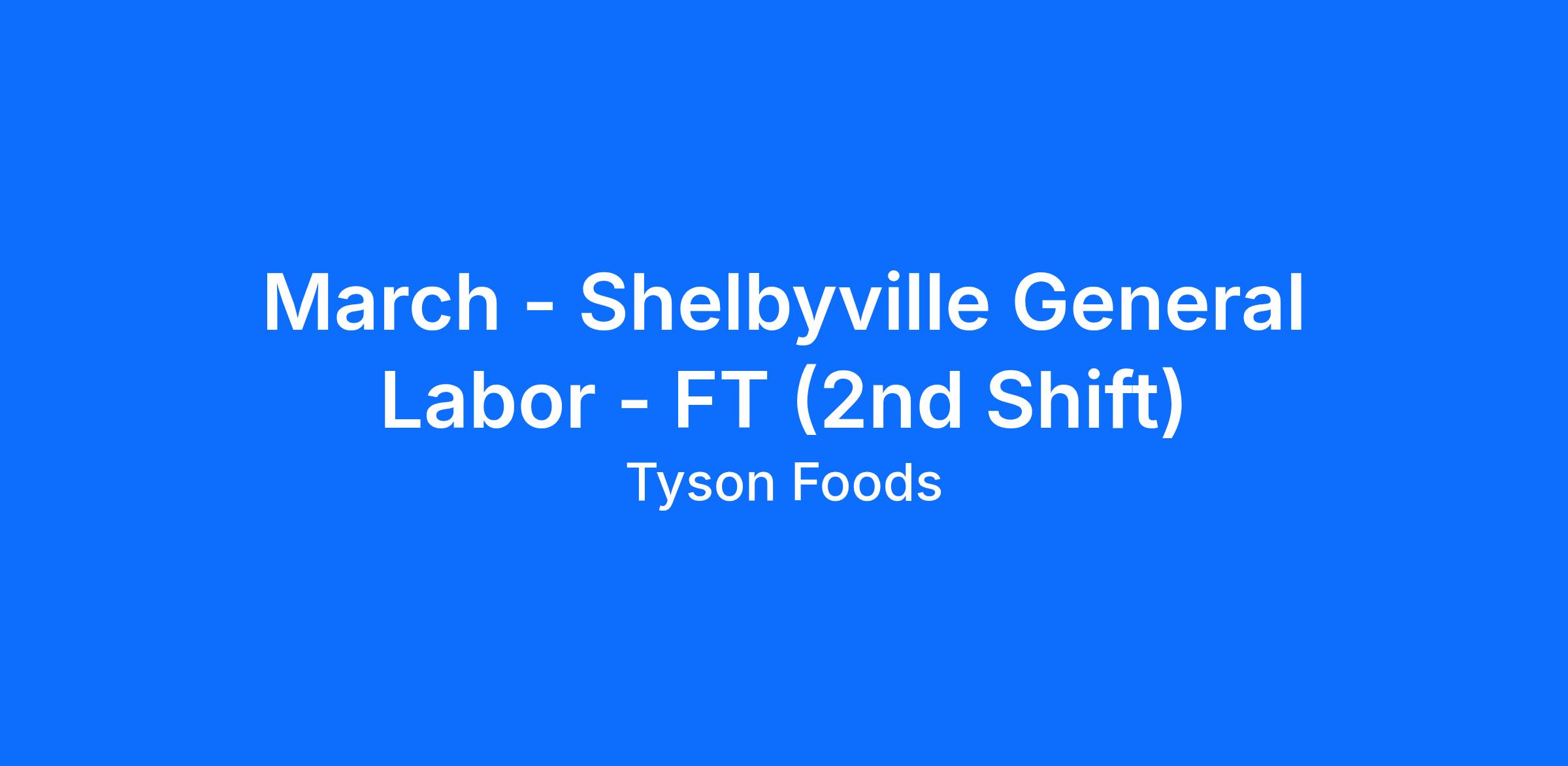 2ND SHIFT (United States of America)Certain roles at Tyson require background checks. If you are offered a position that requires a background check you will be provided additional documentation to complete once an offer has been extended.