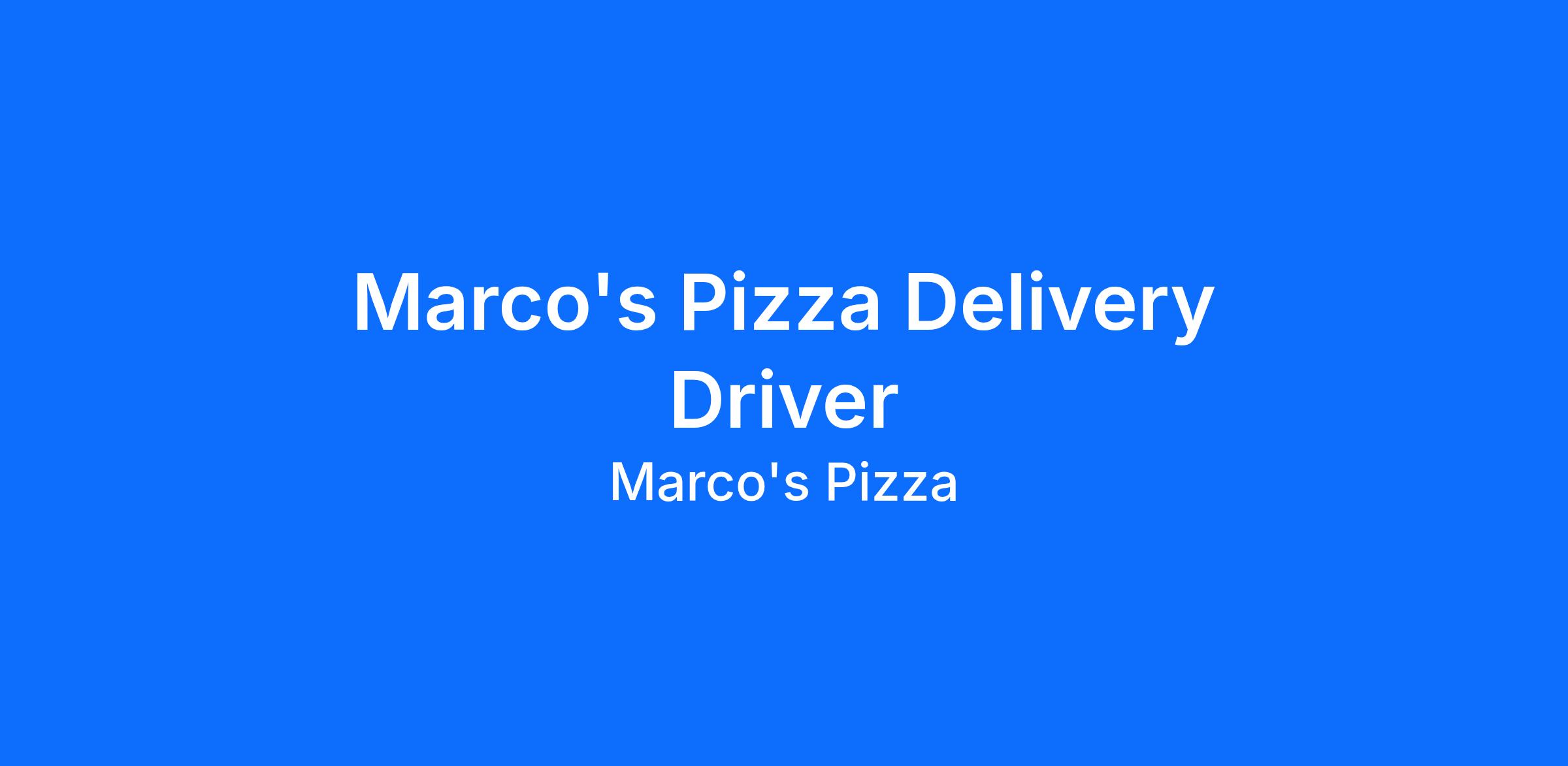As part of our Certified Sales Team, our Delivery Drivers are the face of Marcos Pizza to a vast number of our Guests. As such, we are looking for those who thrive on positive interactions with Guests and who display genuine pride in the Marcos family, our products, and our goal of providing every Guest with a Five-Star experience. As a family, we must be able to rely on each Team Mate to be highly engaged and to display a See It, Own It, Solve It, and Do It sense of personal accountability and responsibility.
