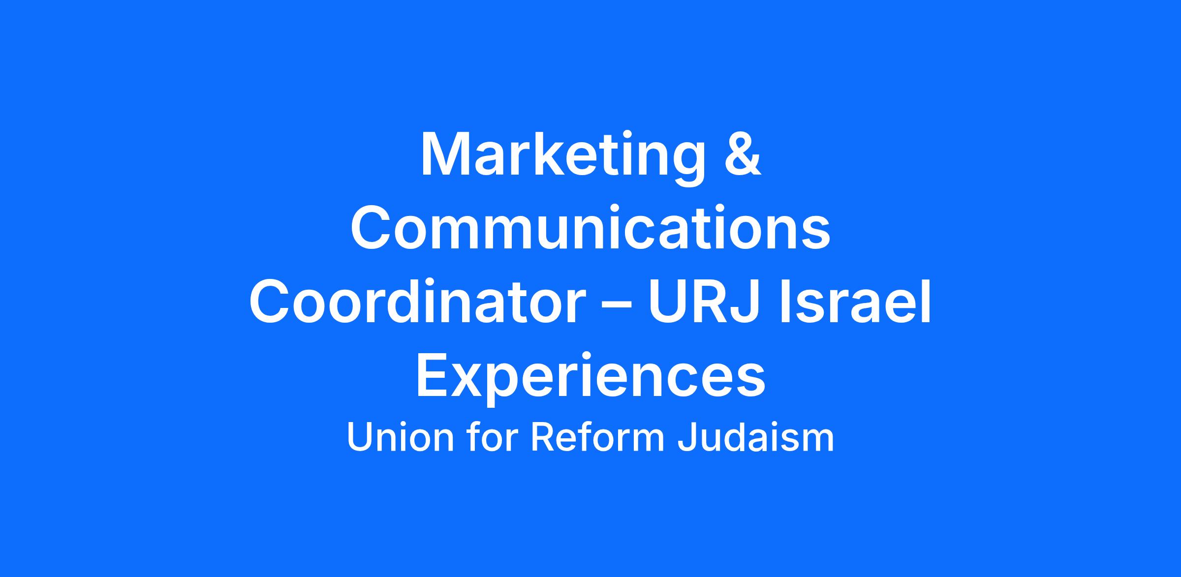 Marketing & Communications Coordinator – URJ Israel Experiences