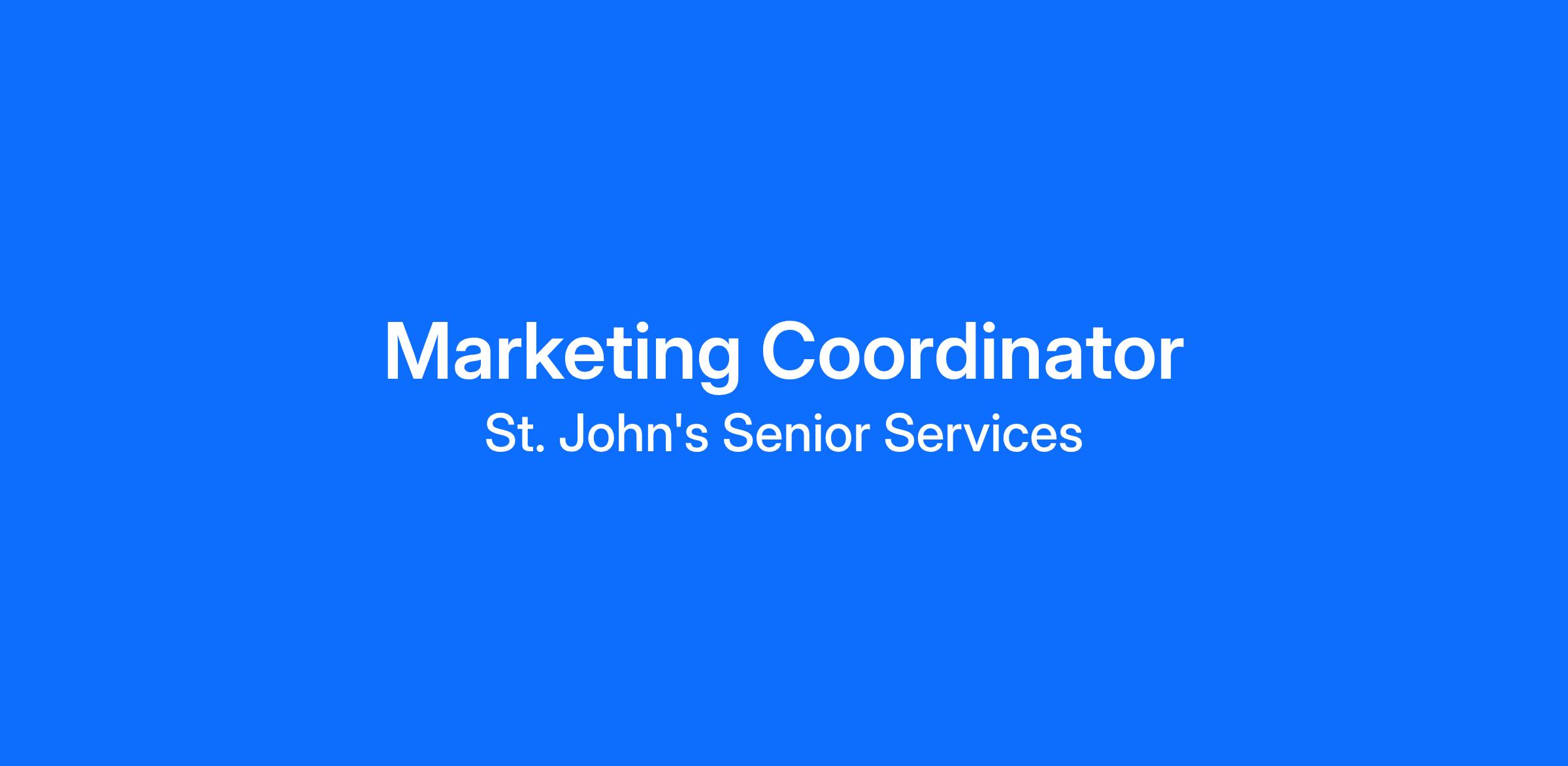 St. John’s is seeking a Marketing Coordinator with excellent oral and written communications skills who has 2+ years of experience in a human, health care, or educational services marketing or related position performing project management, marketing planning, brand management, advertising (traditional and new media), publications production, digital marketing, public relations, design, and copywriting. Applicants must have a Bachelor’s degree in English, Marketing, Communications, or a related discipline and familiarity using popular social platforms, including Facebook, Twitter, LinkedIn, Instagram, Pinterest, Google Business, etc. Our ideal candidate is a passionate self-starter with demonstrated ability to apply “out of the box” thinking to identify creative solutions. As a key member of a truly “hands on” marketing team, the Marketing Coordinator will own select marketing projects and have the opportunity to deliver measurable results.