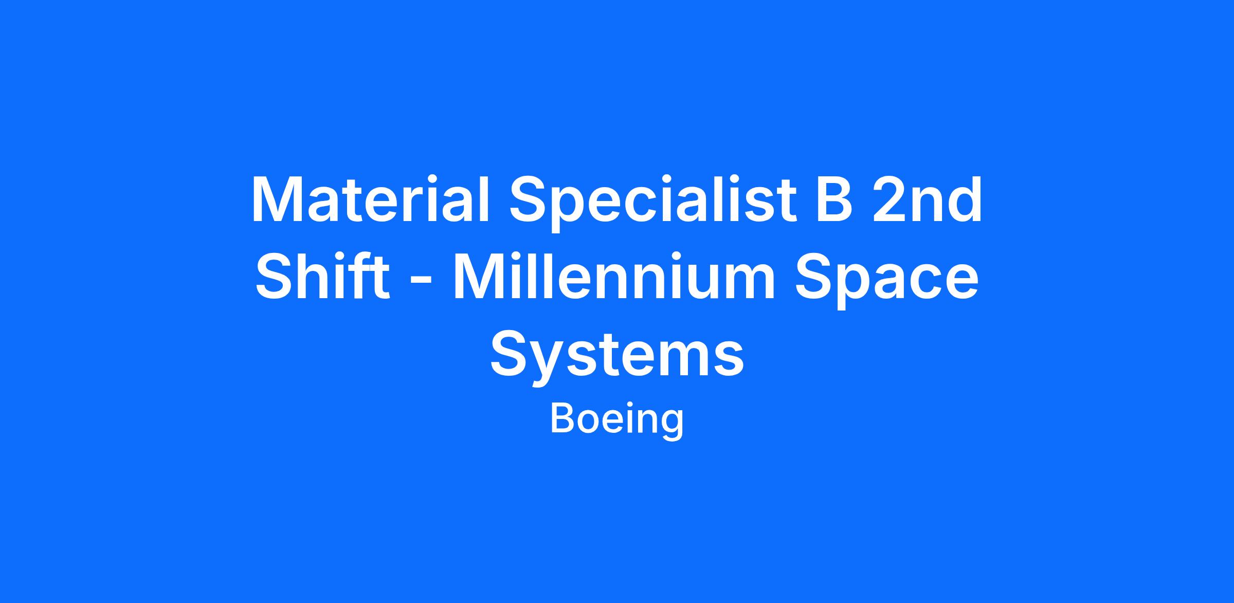 Millennium Space Systems (MSS), a part of Boeing Defense, Space and Security (BDS) is seeking an Material Specialist B – 2nd Shift to support the Inventory team in El Segundo, CA!
