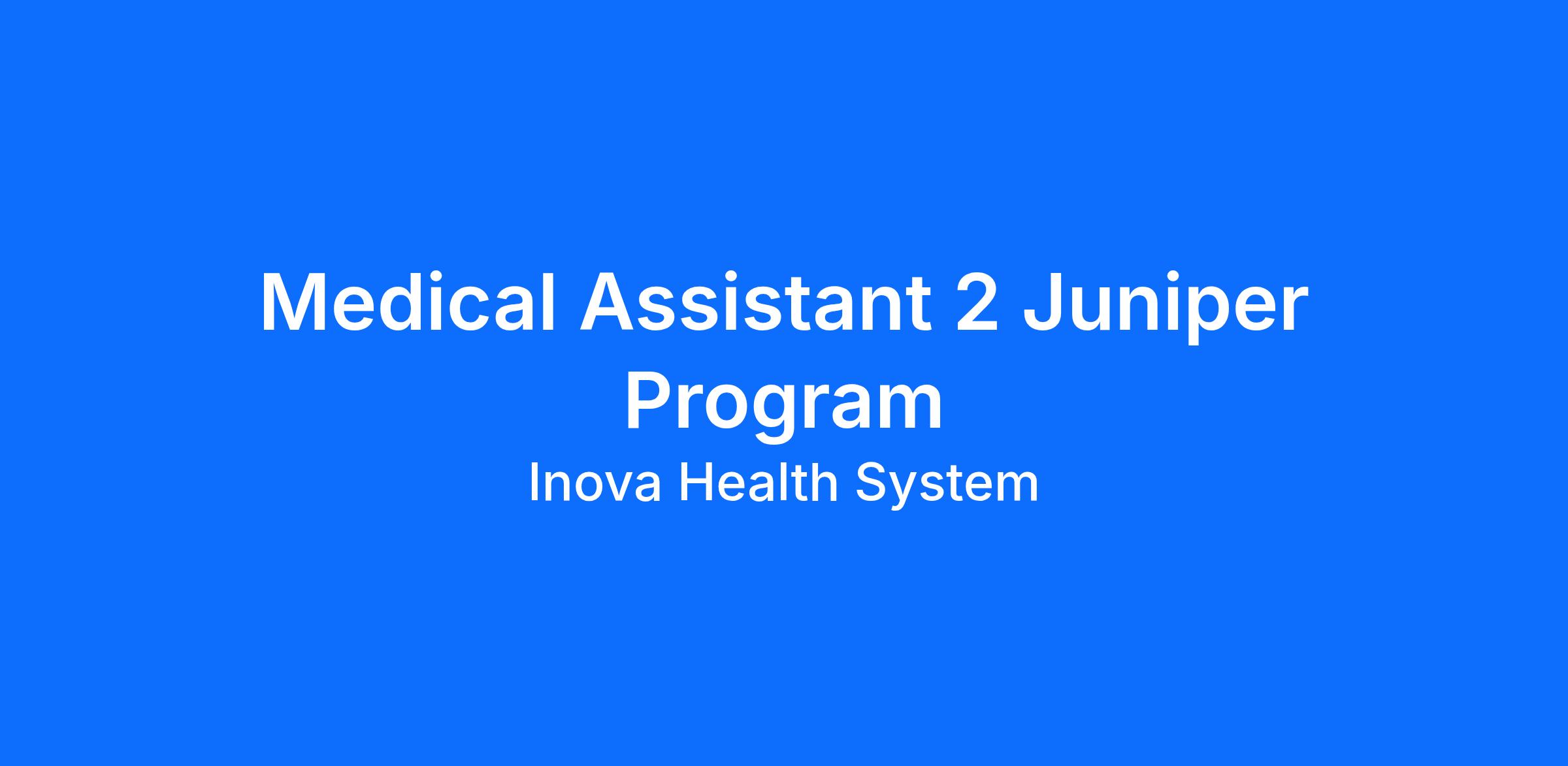 DescriptionInova Health's Juniper Program in Fairfax is looking for a dedicated Medical Assistant 2 to join the team. This role will be Full-Time, Day Shift from Monday – Friday.