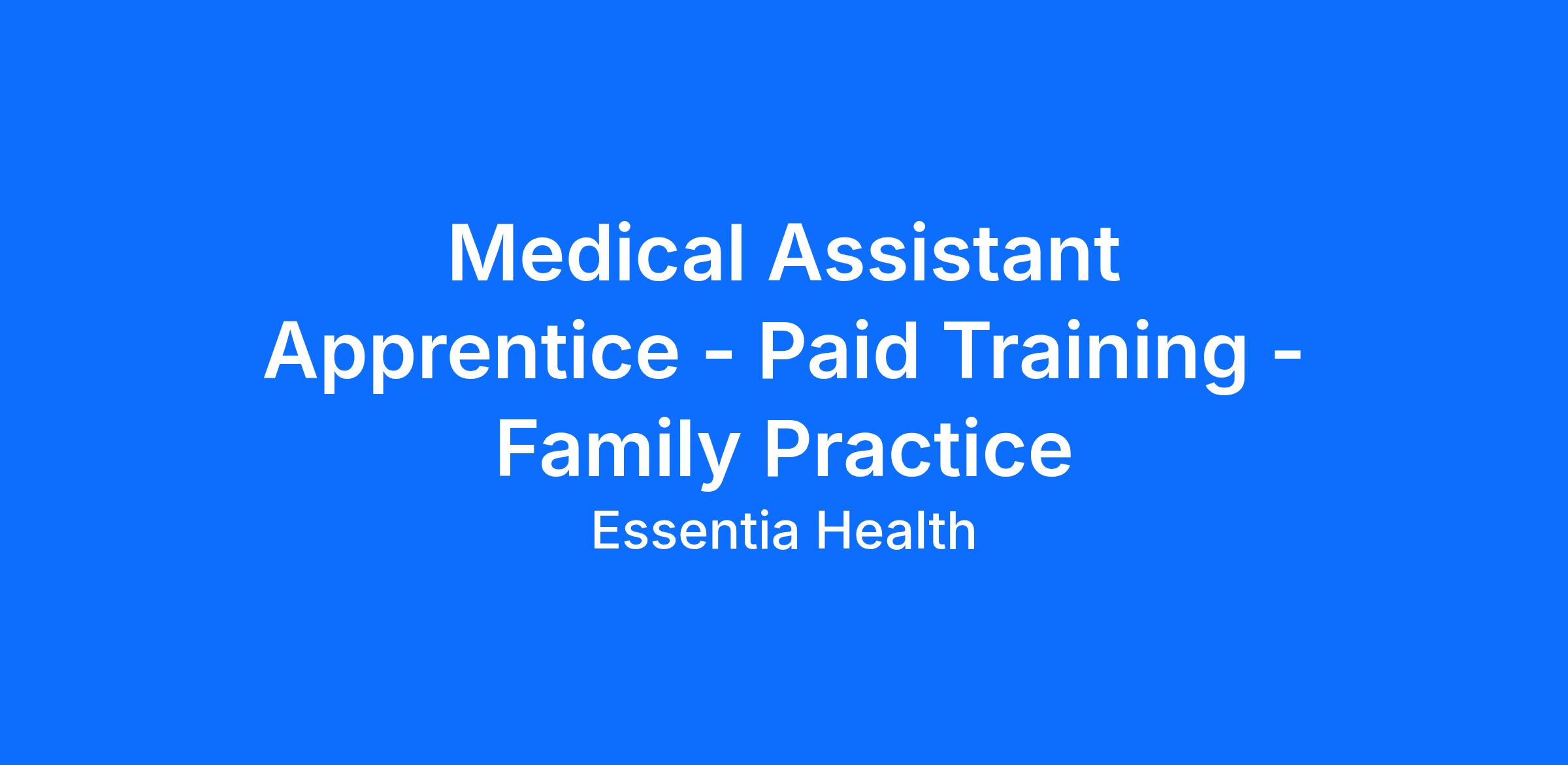 Under the guidance of a Certified Medial Assistant or Licensed Practical Nurse preceptor works at an entry-level, assisting RN, Physician and other providers with direct patient care in the ambulatory setting to contribute to meeting the mission and goals of Essentia Health. As an apprentice, the Clinical Assistant in Training will perform identified procedures individually once competencies have been demonstrated. Cares for patients ranging in age from newborn to elderly as noted on age-related category.