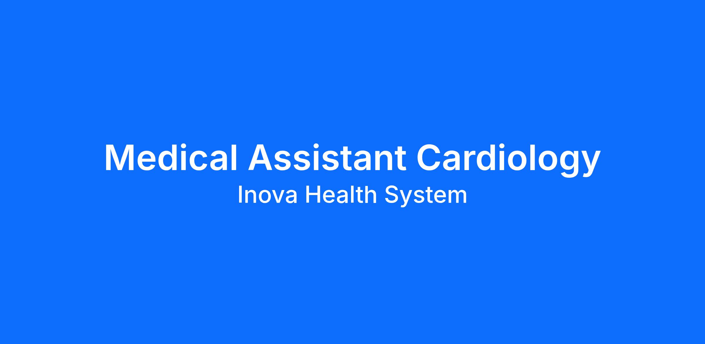 DescriptionInova Health Cardiology in Mt. Vernon is looking for a dedicated Medical Assistant 1 to join the team. This role will be Full-Time, Day Shift from Monday – Friday.