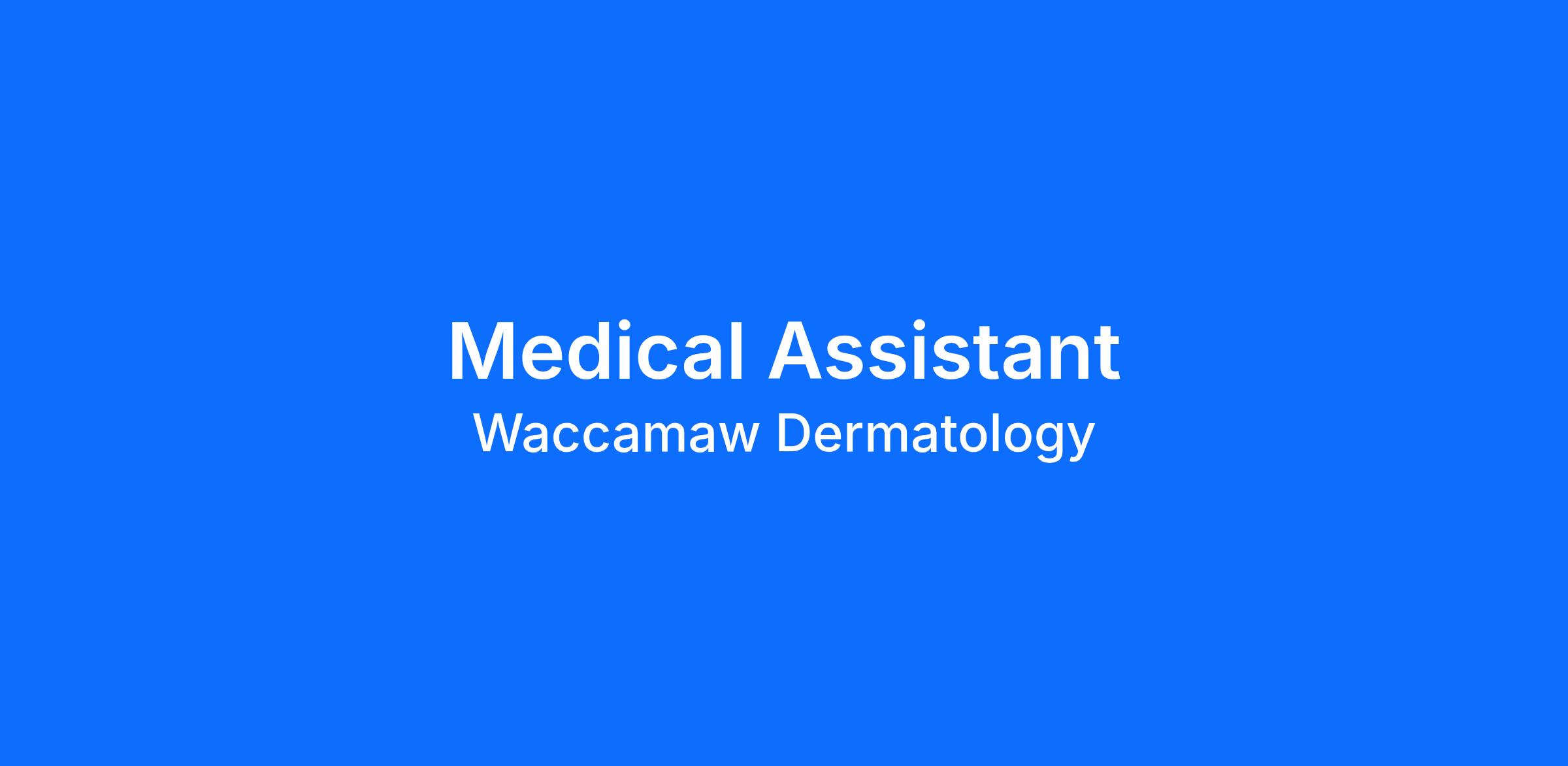 Since 1984, Waccamaw Dermatology has proudly served as the Carolinas' award-winning premier dermatology provider across our 12 welcoming locations. We're excited to invite a skilled professional to join our Conway team as a Full-Time Medical Assistant. The position includes competitive compensation (based on experience) and comprehensive benefits (detailed below). We'd love to welcome you into our supportive work family where you'll find genuine opportunities for professional growth and career advancement in a positive, patient-focused environment.