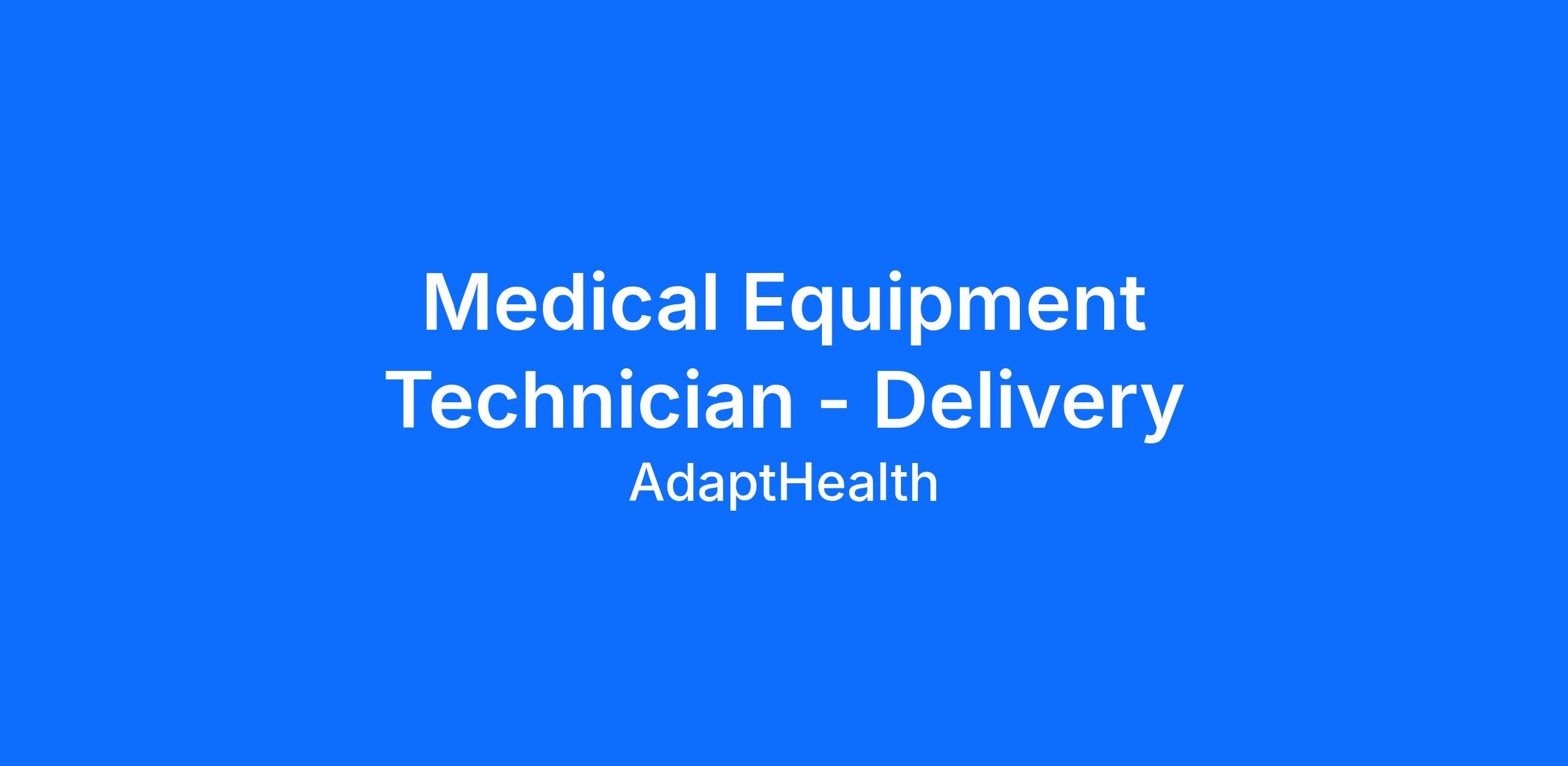 Medical Equipment Technician - Delivery