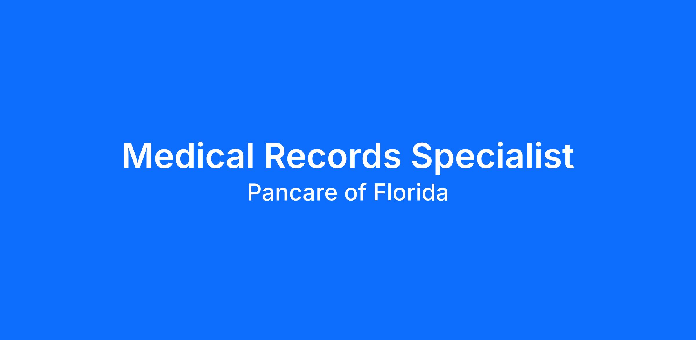 Due to continued growth and our commitment to maintaining accurate and secure patient information, PanCare of Florida is expanding our team with two new Medical Records Specialist positions. In this important role, you will help ensure the integrity, confidentiality, and accessibility of patient health records across our clinics. Medical Records Specialists play a vital behind-the-scenes role in patient care by supporting the accurate documentation, organization, and management of medical records. The ideal candidate is highly detail-oriented, organized, and committed to protecting patient privacy while working collaboratively with clinical and administrative teams. If you take pride in precision, compliance, and helping healthcare teams operate efficiently, we invite you to join our mission-driven organization.