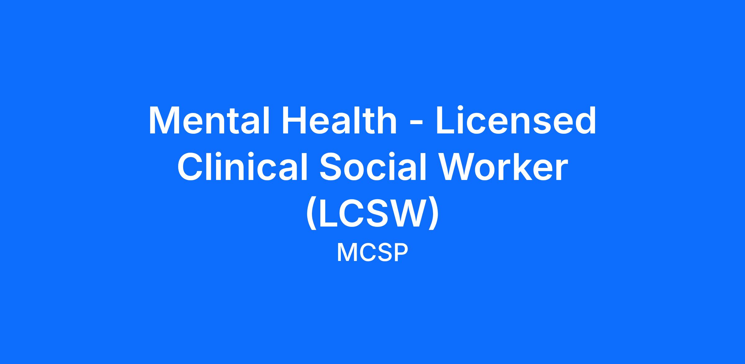 Duties/Responsibilities shall include, but are not limited to: Licensed Clinical Social Worker (LCSW)