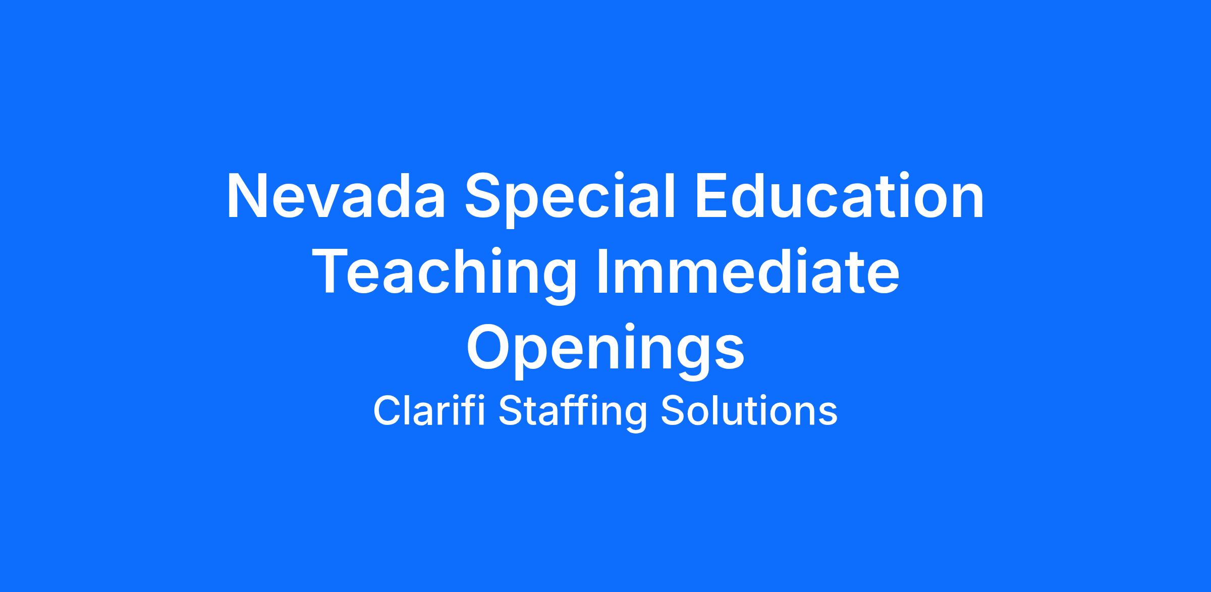 - Valid Nevada Special Education teaching license or eligibility to obtain.