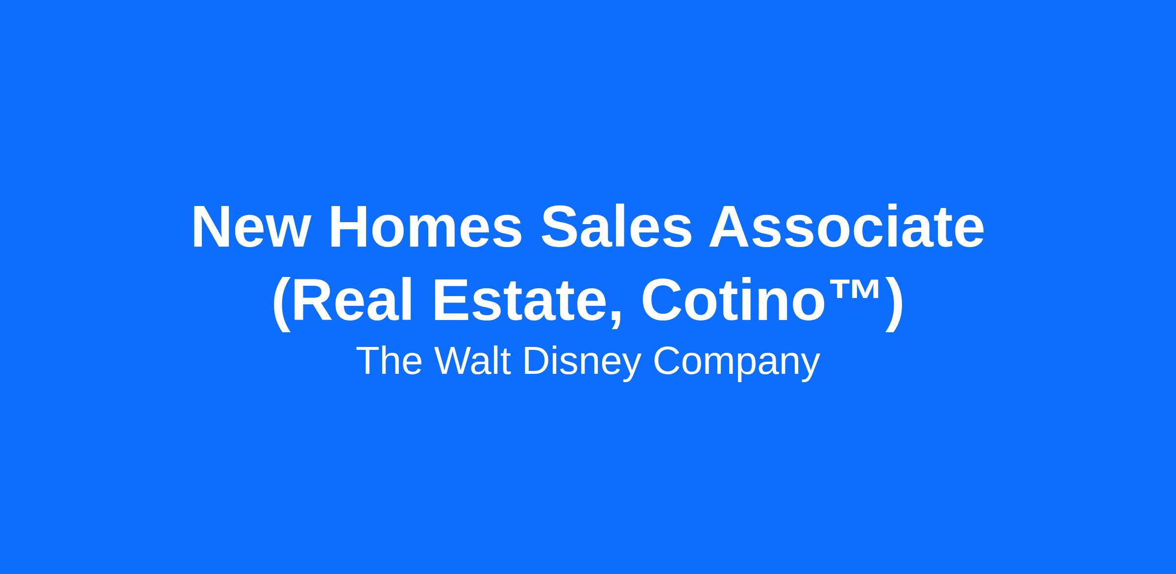 New Homes Sales Associate (Real Estate, Cotino™)