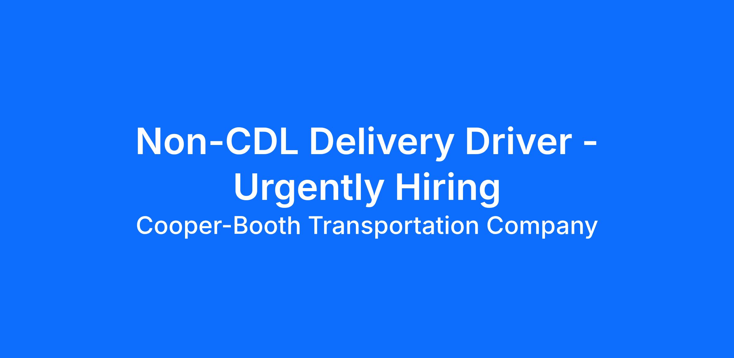 Position Summary: Cooper-Booth is looking for reliable Non-CDL Delivery Drivers to join our team and ensure timely and accurate deliveries.