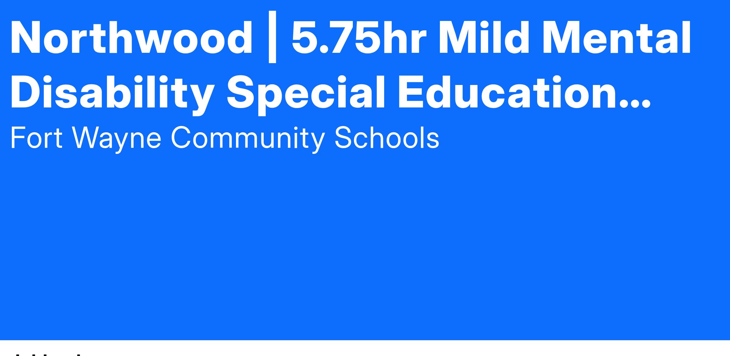 Candidate must have a high school diploma or GED. Prefer candidate who has previous experience working with students with special needs. Must be flexible to meet the changing needs of students and have strong tutorial skills. Must be able to relate well with students, staff and parents. Candidate must have a strong desire to see young people be successful. Must have a positive attitude and be able to complete tasks independently. Must have strong office, computer, and oral and written communication skills. Incumbents must possess knowledge of child guidance principles and practices, and basic instructional methods and techniques. Must be willing to supervise students in community settings. Must participate in training provided by the Special Education Department.