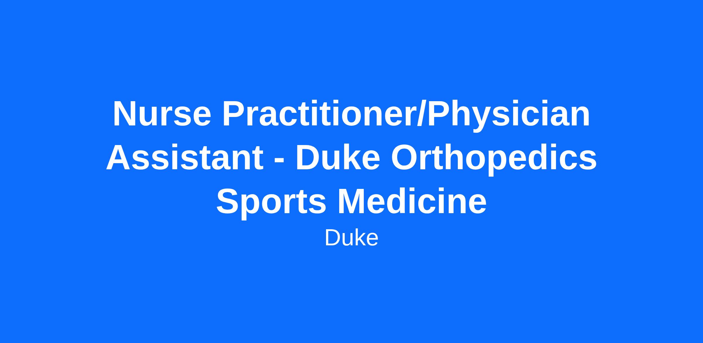 Nurse Practitioner/Physician Assistant - Duke Orthopedics Sports Medicine