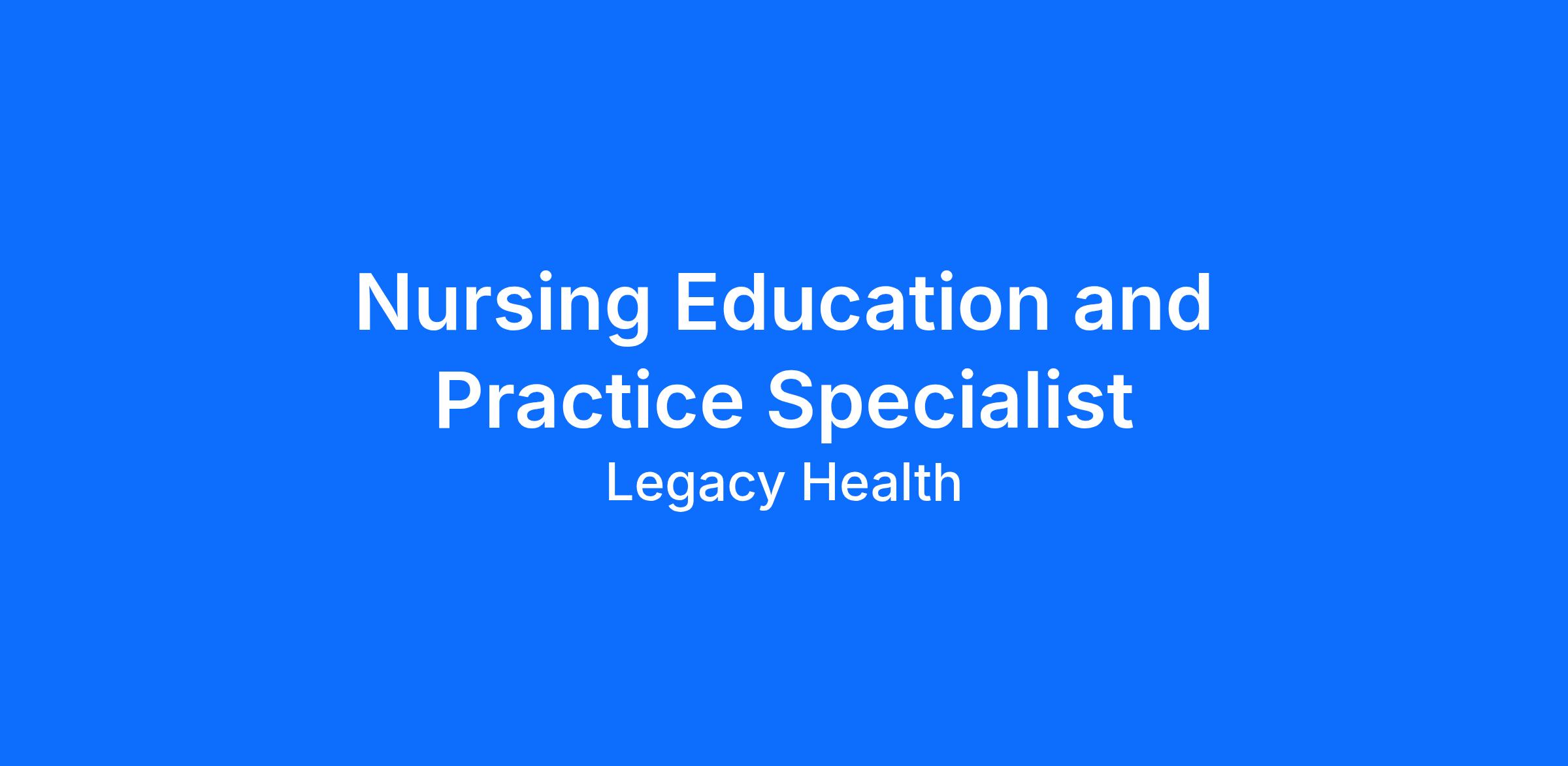 The Legacy nursing philosophy focuses on patients and their families. Our nurses embody this philosophy in everything they do, as advocates, communicators, problem-solvers and caregivers. Their expertise is sought after and respected by our health care team. In short, they are the face of wellness at Legacy. Does this sound like an environment in which you could thrive? If so, we invite you to consider this opportunity.