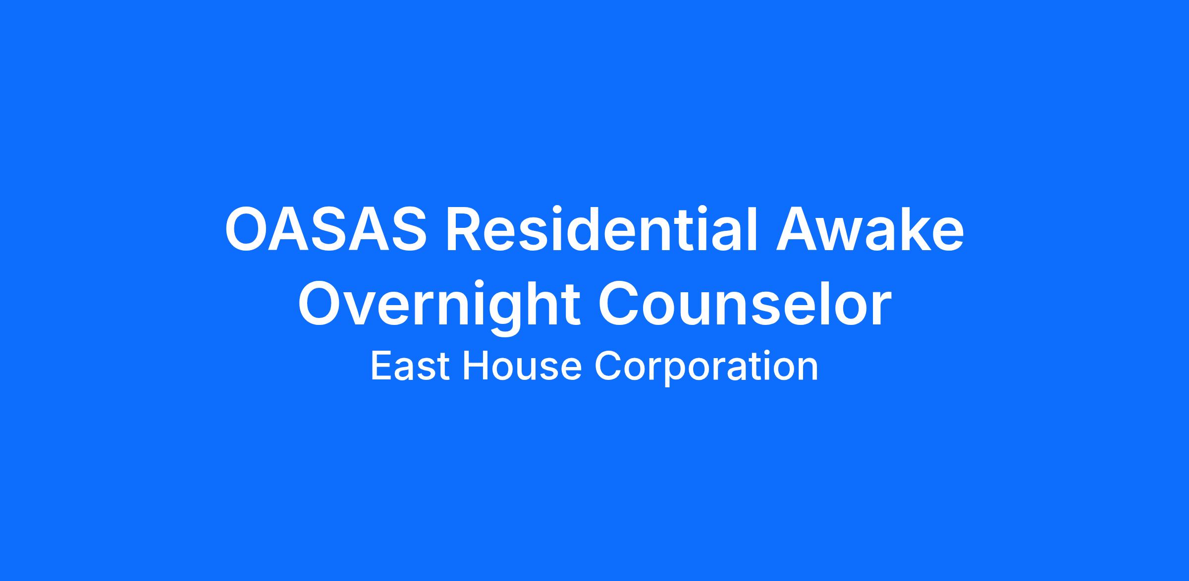 Awake Overnight Counselor Requirements: The Awake Overnight Counselor position at East House requires a minimum of a high school diploma or equivalent with some paid human service experience. Motor Vehicle license and safe driving record.