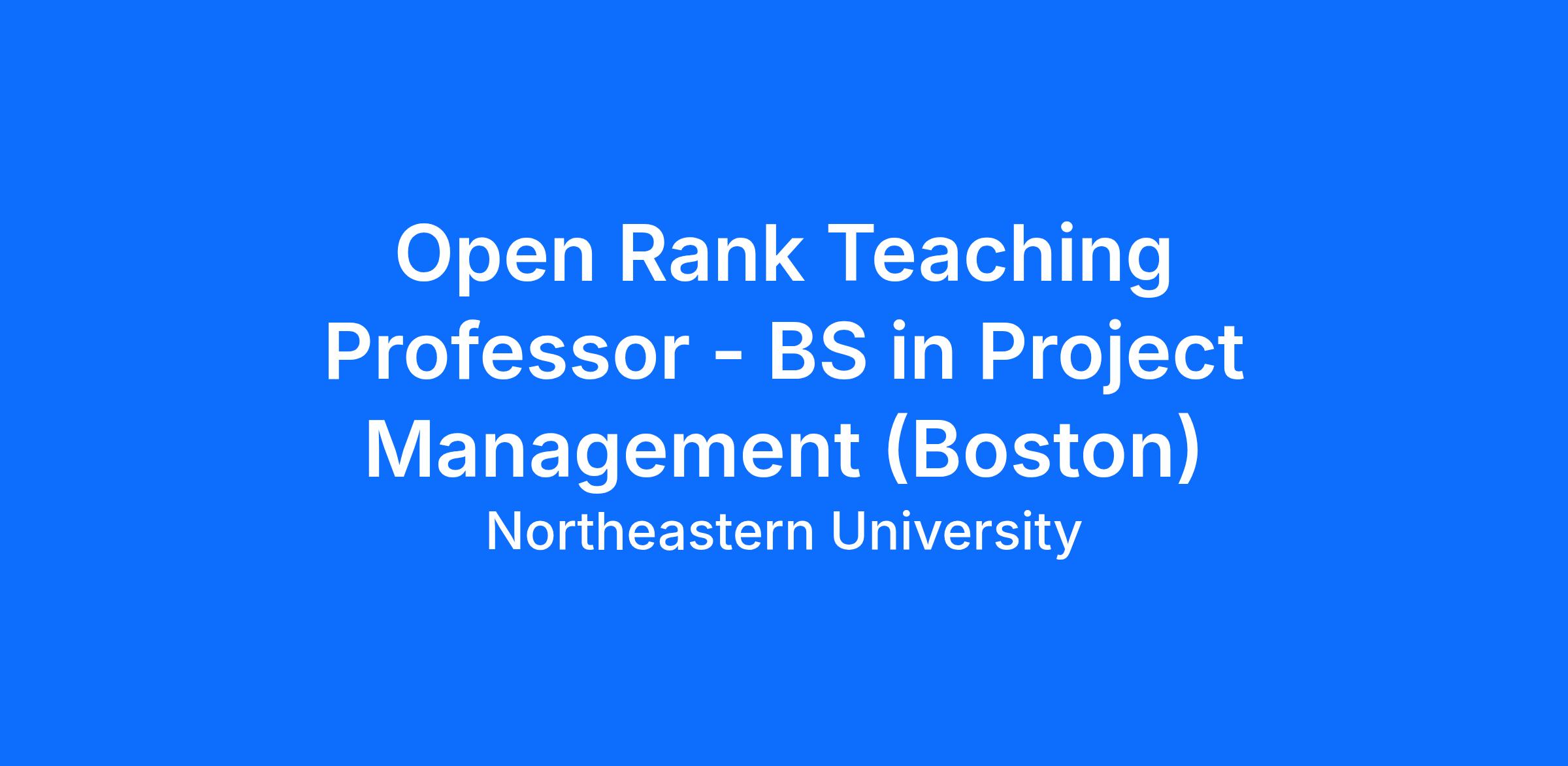 The College of Professional Studies (CPS) at Northeastern University invites applications for a full-time, non-tenure track open rank Teaching Professor and Academic Lead position in the Bachelor of Science in Project Management. The position is based at our campus in Boston, MA.