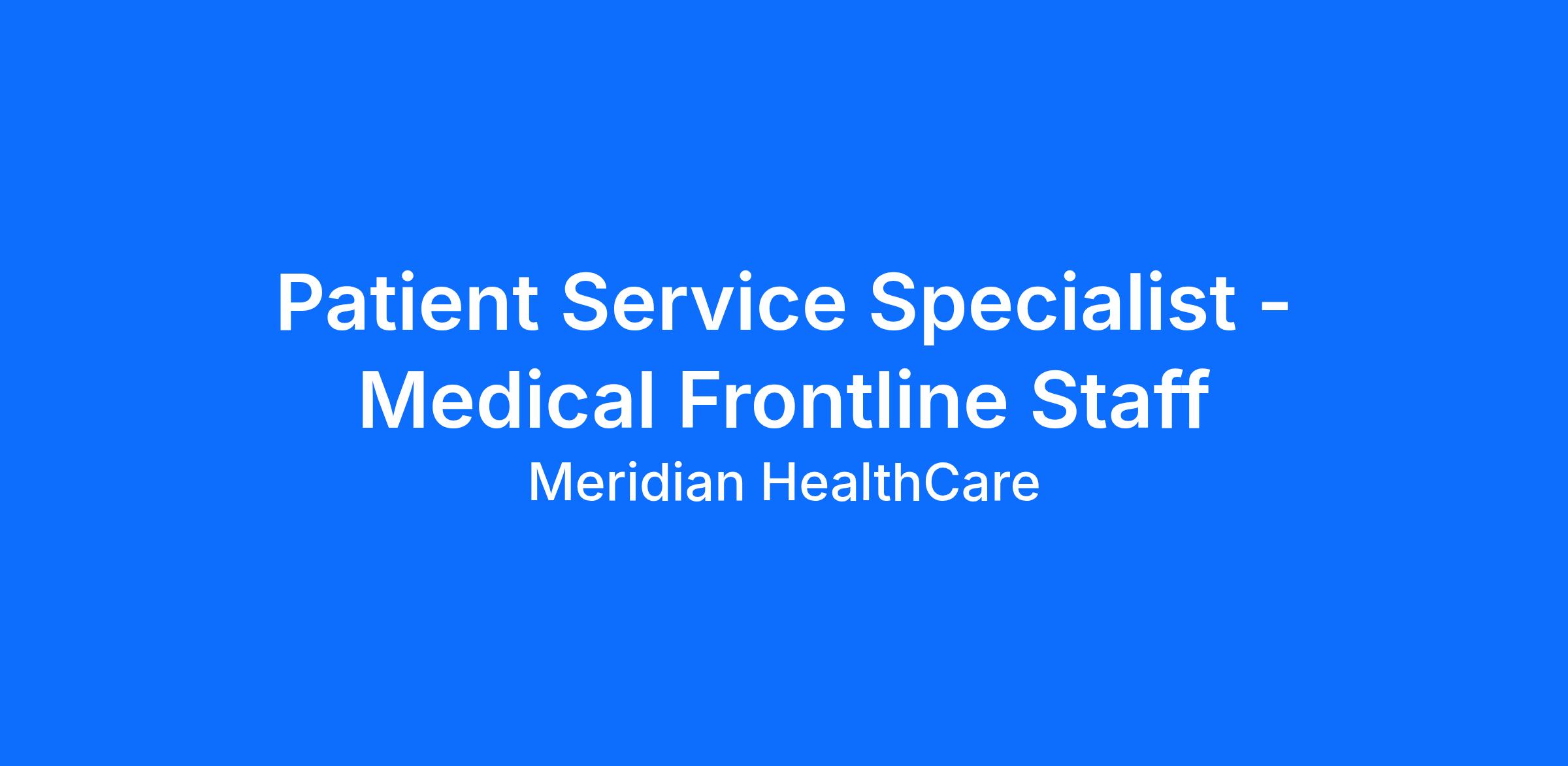 Meridian HealthCare is seeking a Patient Service Specialist to join our dedicated healthcare team in Mahoning County, OH. This is a full-time, front-desk position ideal for someone who is detail-oriented, organized, and passionate about providing outstanding customer service in a healthcare environment.