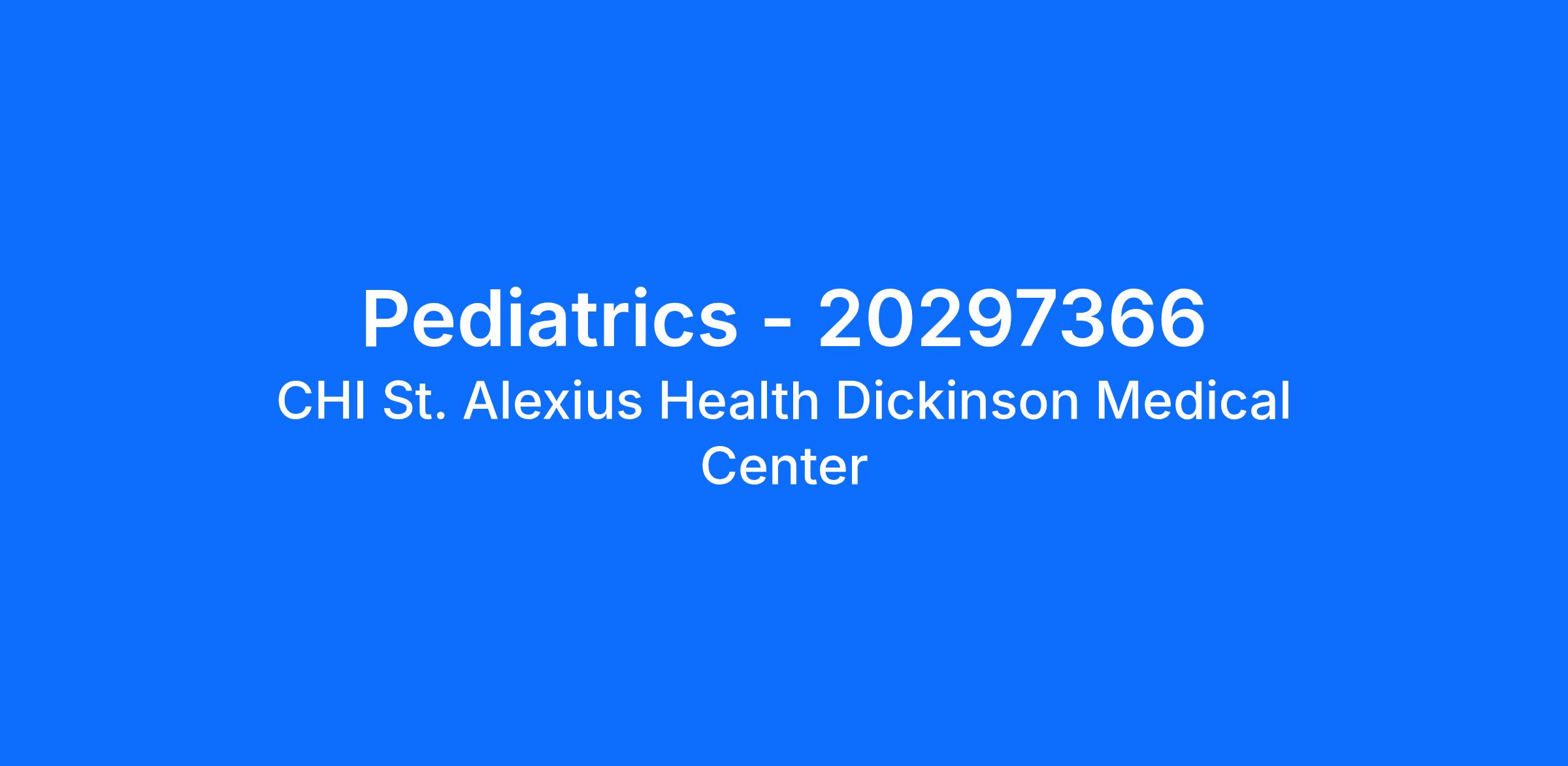 St. Alexius Health Dickinson is looking for a Pediatric locum to work 24hr call 7 days per month. CERTIFICATION REQUIREMENTS • ACLS • BLS • PALS
