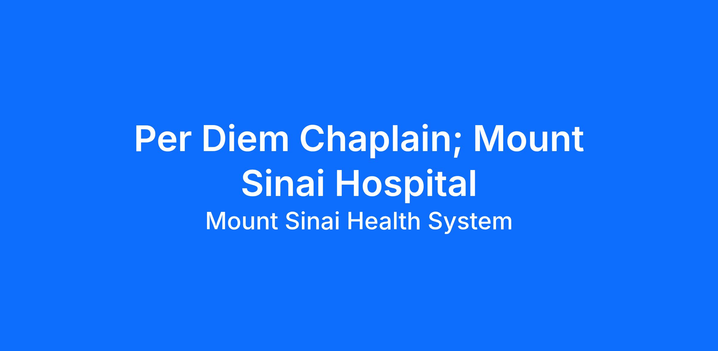 DescriptionReporting to the Director of Spiritual Care and Education, the Per-Diem Chaplain is responsible for addressing the spiritual, religious, and emotional needs of patients, families, and staff at Mount Sinai Hospital. The Per-Diem Chaplain joins a dynamic team within the Department of Spiritual Care and Education, fostering collaborative relationships with interdisciplinary care teams and contributing to the well-being of the Mount Sinai community. The Per-Diem Chaplain position may be temporary or part-time.