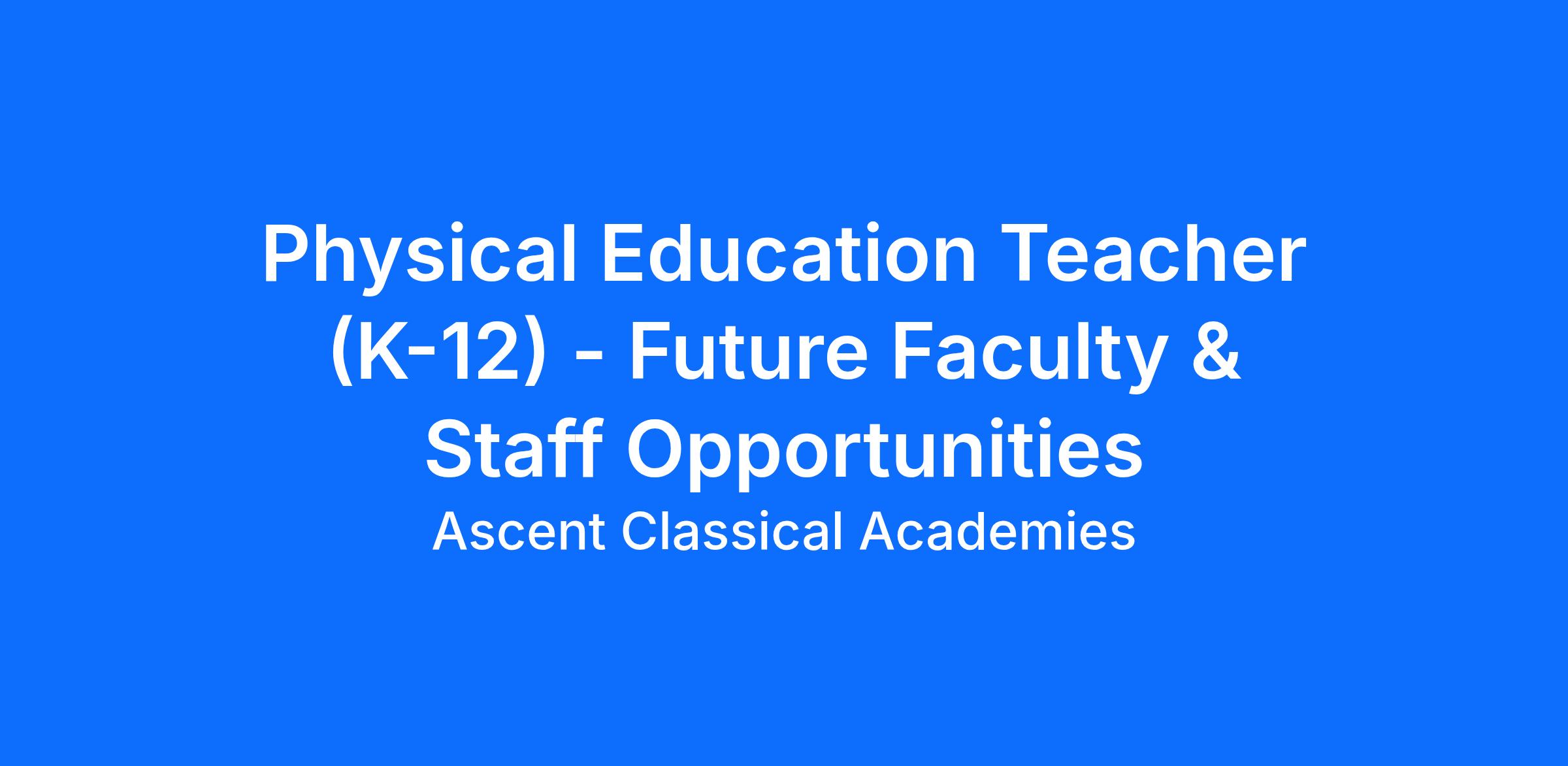 Visit https://ascentclassical.org/careers for more information on Ascent Classical Academies’ mission and vision, benefits, and to submit an application. Applications will require a cover letter, unofficial transcripts, and a 400-600 word educational philosophy statement relevant to the value of a liberal, classical education.