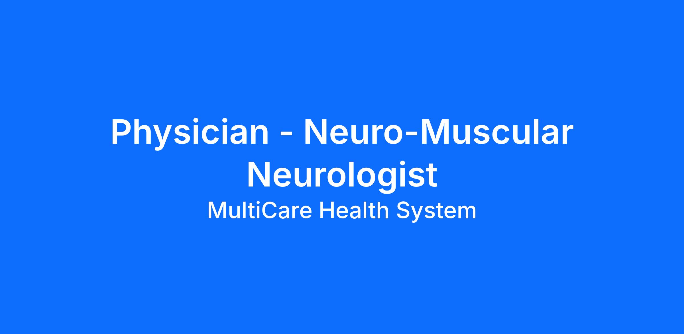 MultiCare Health System's Neuroscience Institute is seeking a BE/BC neurologist fellowship trained in Neuro-muscular to join our expanding group of 20+ neurologists with additional APP support.