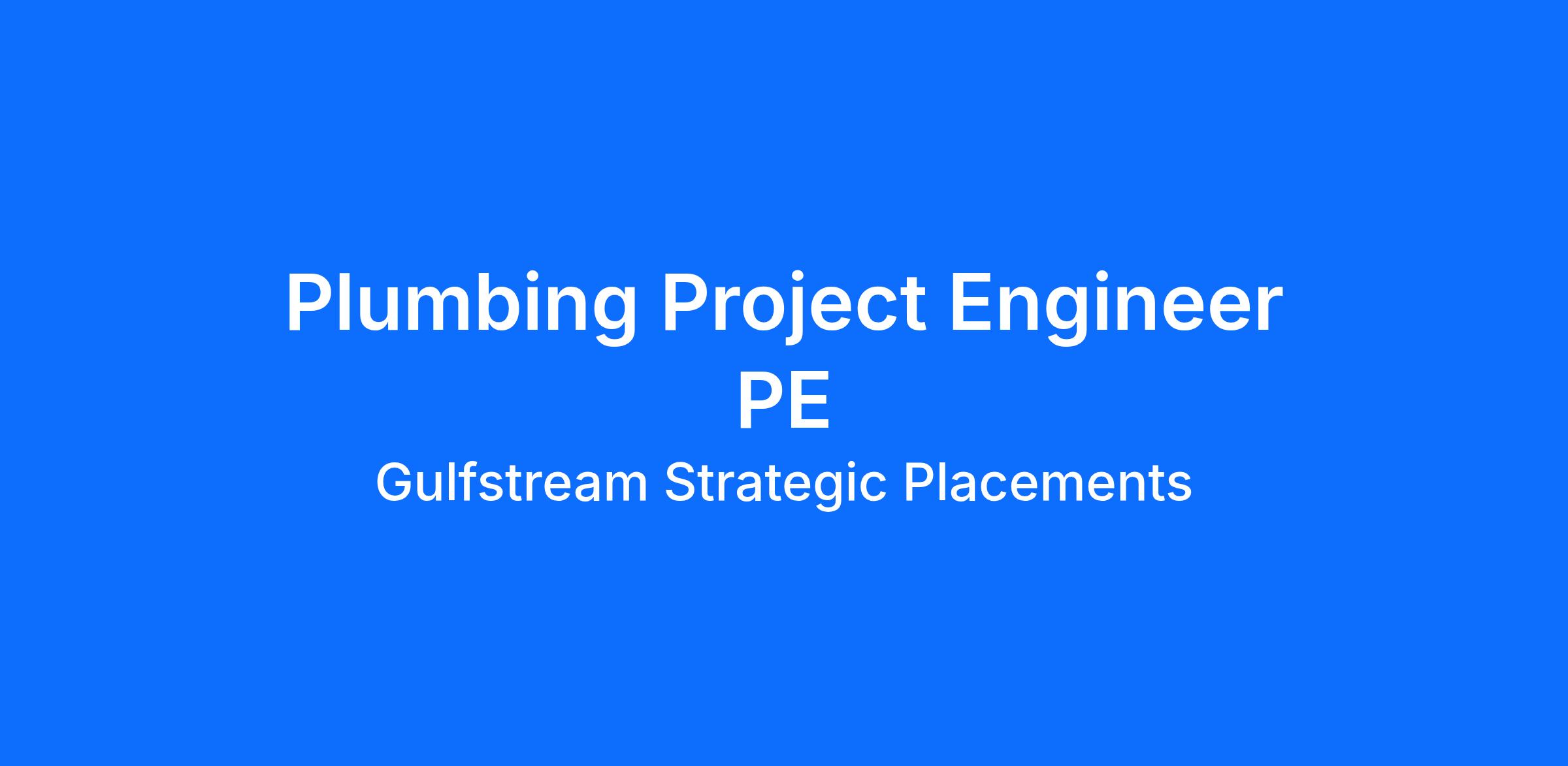 Requirements for Plumbing Project Engineer PE: