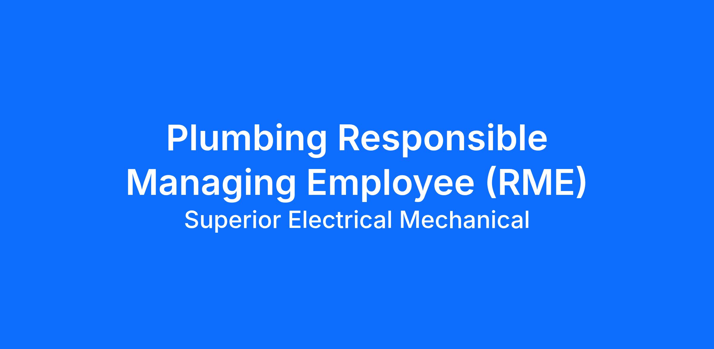 We are seeking a knowledgeable and licensed Plumbing Responsible Managing Employee (RME) to oversee our commercial plumbing operations and ensure compliance with industry standards and regulations. This role offers an exciting opportunity to lead a team, uphold safety standards, and contribute to the successful delivery of commercial plumbing services within our organization.