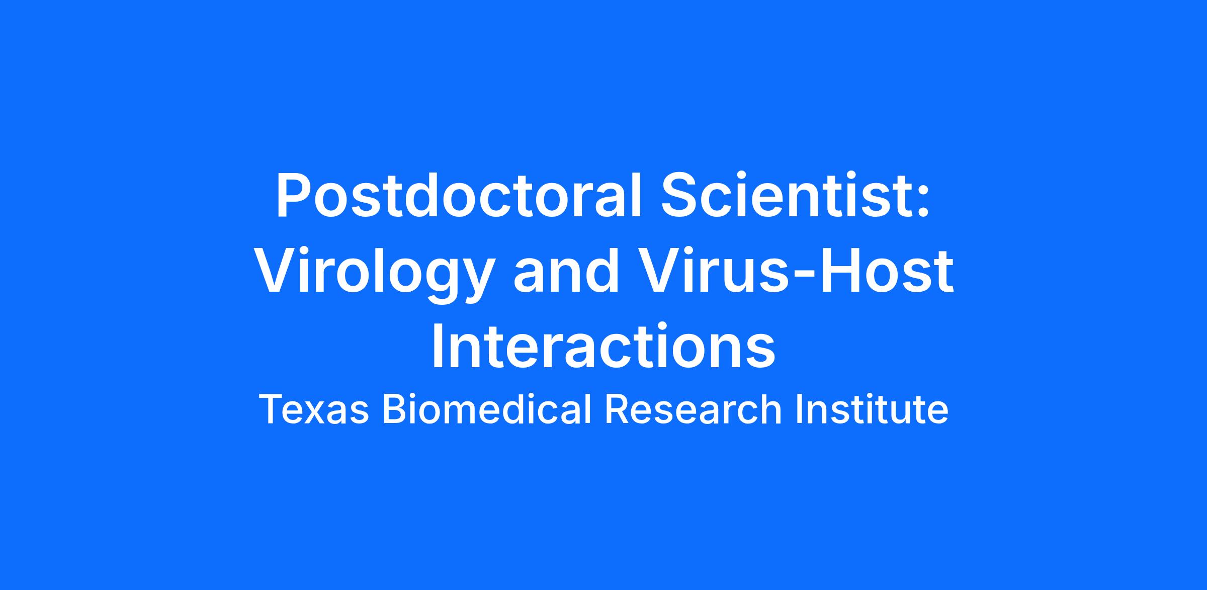 Your work environment will be the Disease Intervention & Prevention at the Texas Biomedical Research Institute. Texas Biomedical Research Institute is the only private, non-profit infectious disease research facility, providing high containment research capabilities (BSL3 & BSL4) alongside a National Primate Research Center.