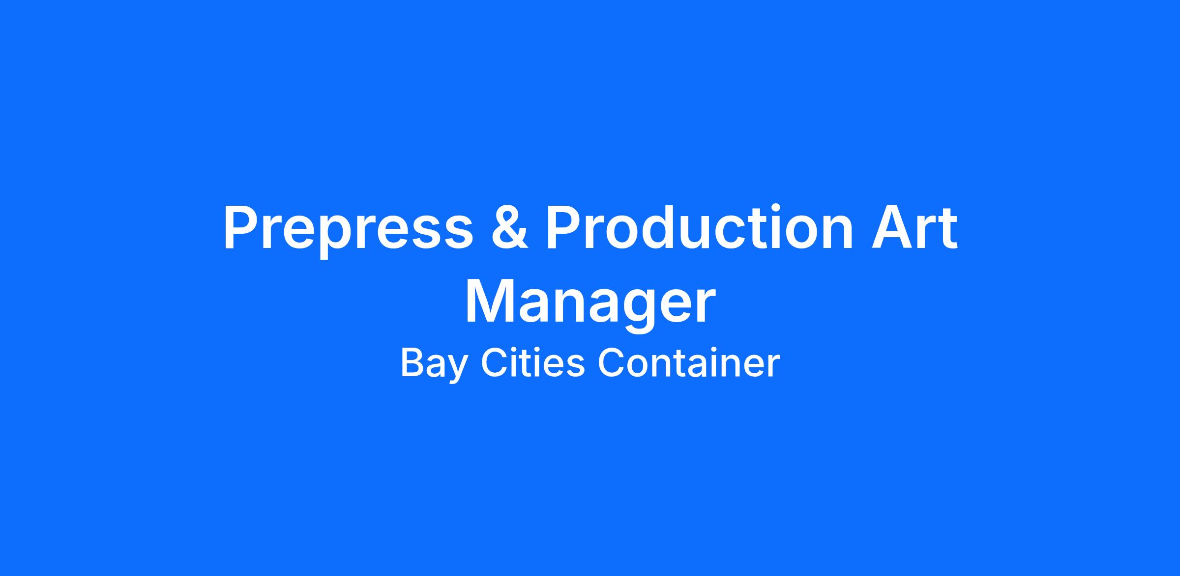 The Prepress & Production Art Manager leads a highly technical production art team responsible for preparing, adjusting, and optimizing client-supplied artwork for print manufacturing. This is not a creative design role, however there are occasionally opportunities to be creative. The position focuses on ensuring client-provided artwork is production-ready, prints at the highest possible quality, and is routed for the most appropriate printing method and press.