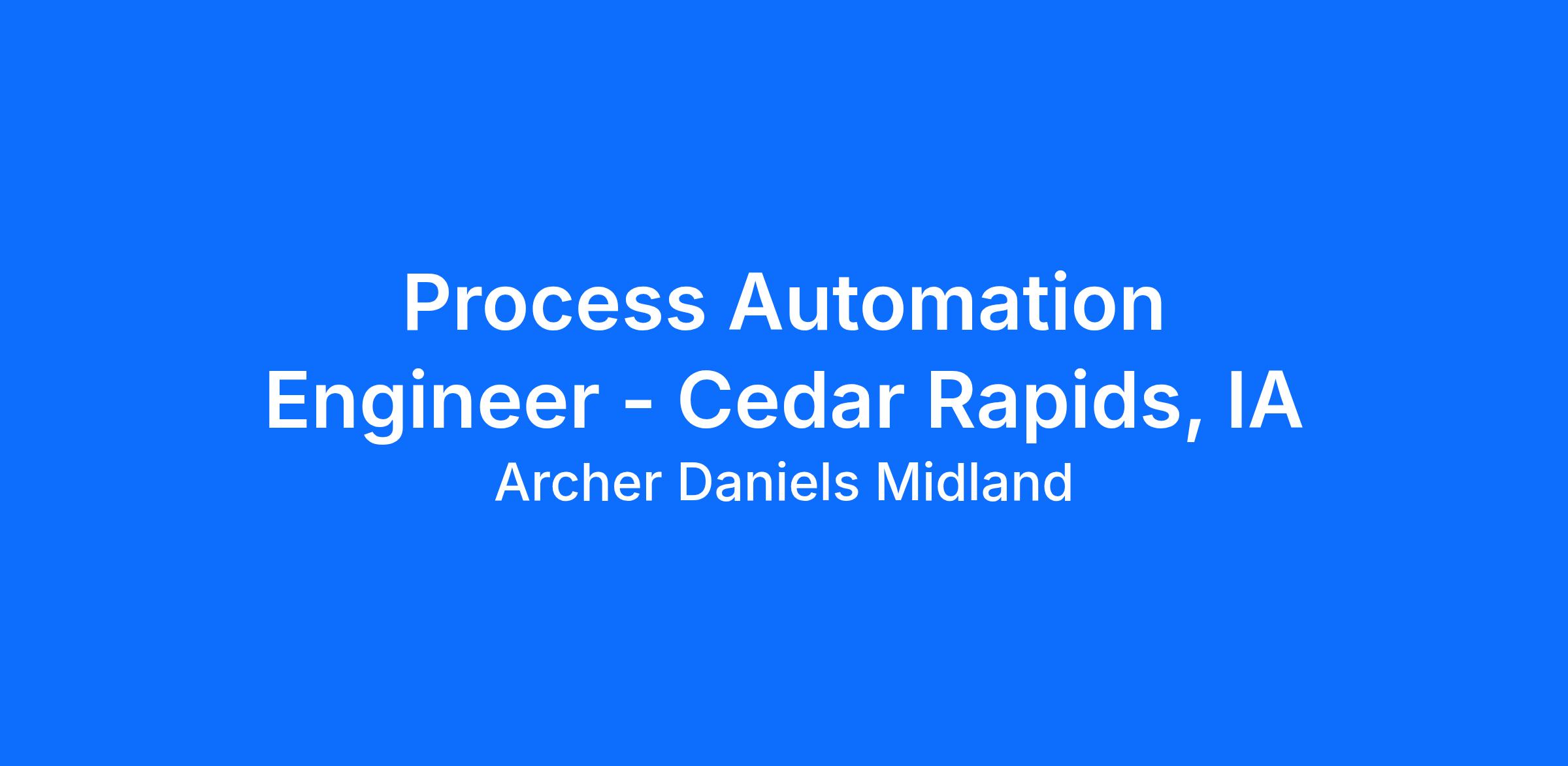 Process Automation Engineer – Cedar Rapids, IAThis is a full time, exempt position