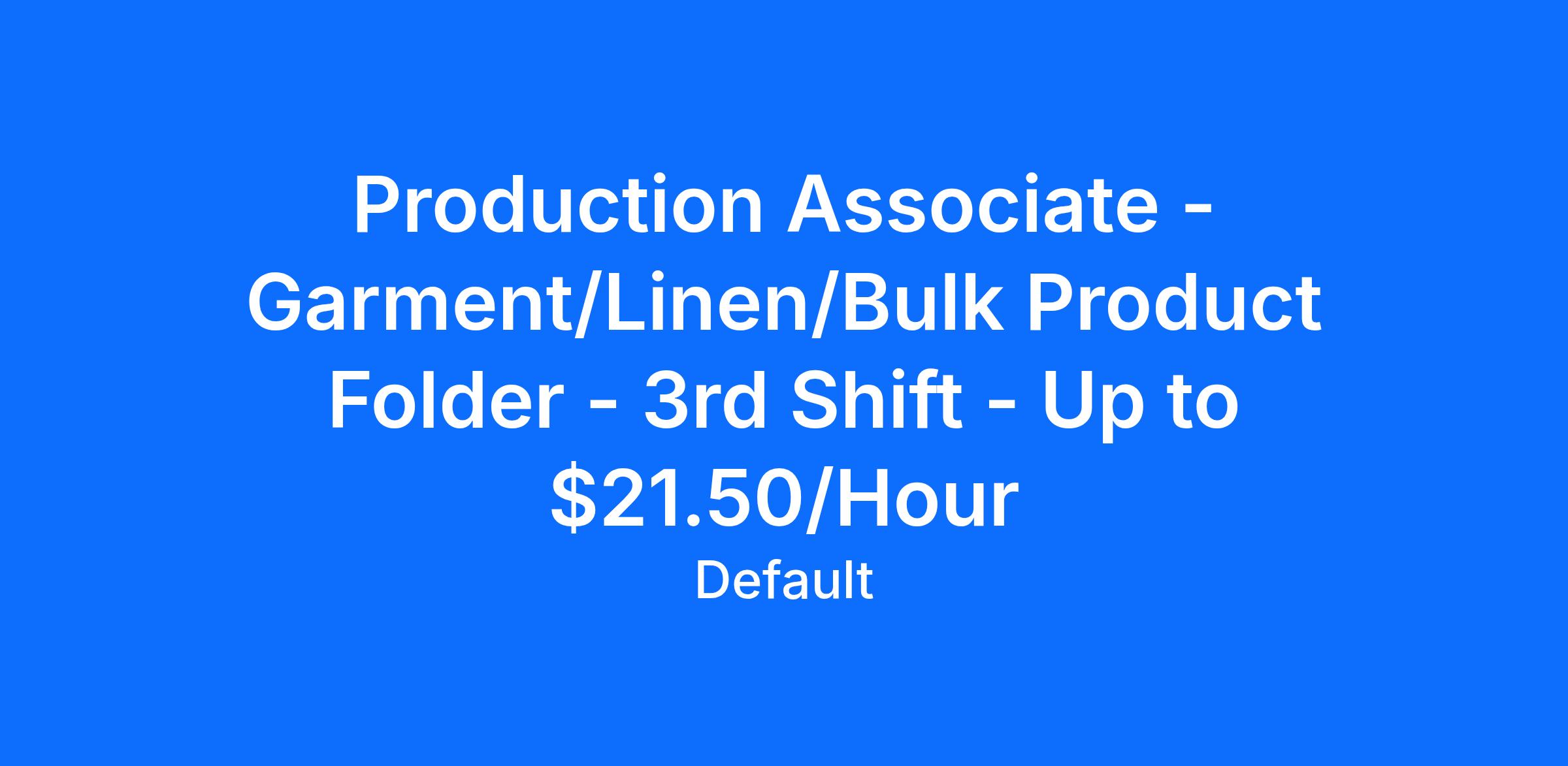 Cintas is seeking a Production Associate – Garment/Linen/Bulk Product Folder to support the Rental Division. The Product Folder is responsible for folding customer product manually or through the use of an industrial garment folding machine, counting folded product, and preparing bundles of clean, folded product for delivery to customers. Product Folders are expected to maintain the cleanliness of their work area. This position is on a performance-based incentive pay structure; meaning the Product Folder must meet or exceed a production standard for folding product, and additional compensation incentive (e.g., higher hourly pay) is tied to exceeding production standards.