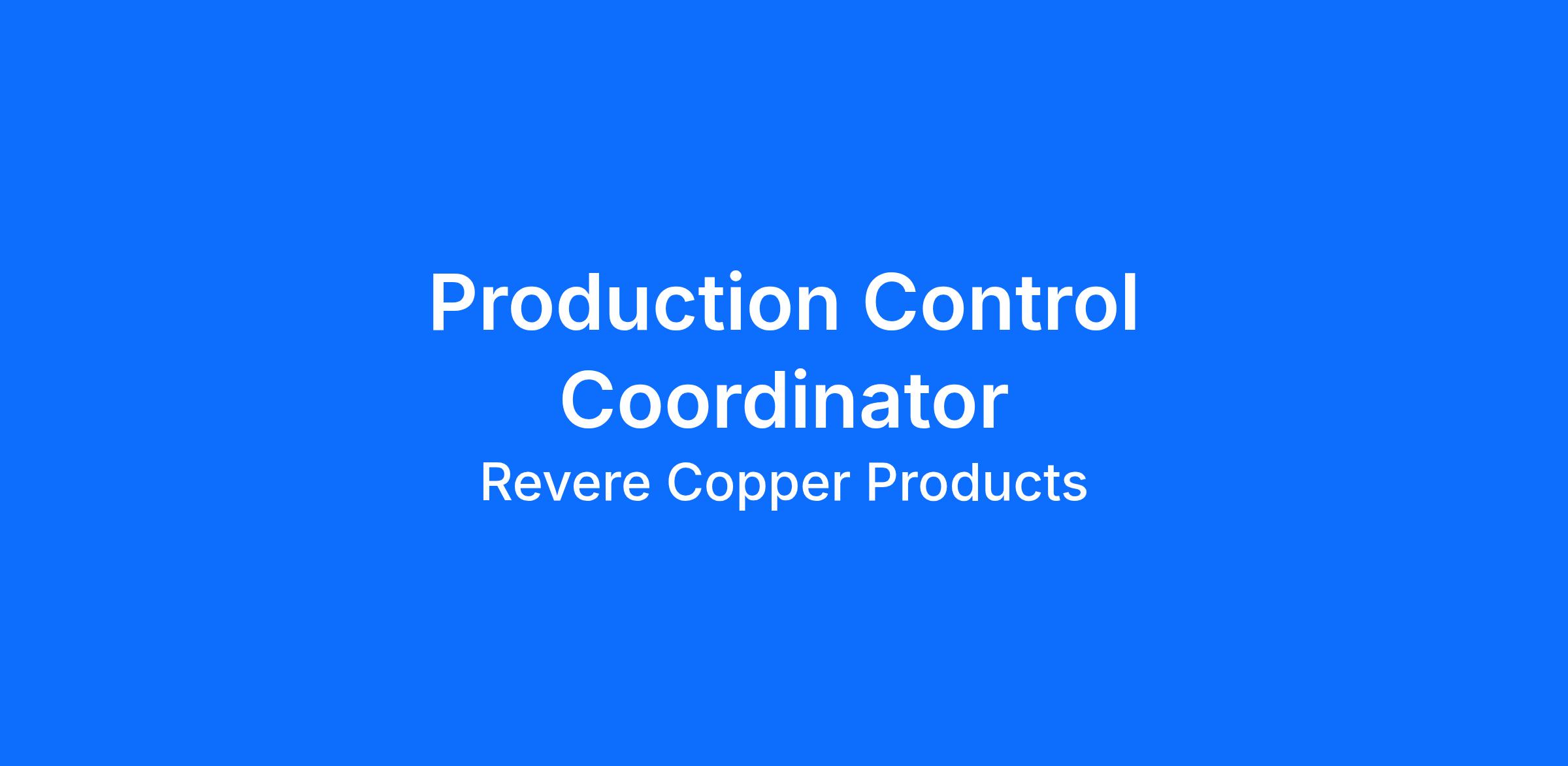 Revere Copper Products is looking for a Production Control Coordinator to join our respected team of professionals in Rome, NY. Founded by Paul Revere in 1801, our company is one of the finest copper manufacturers in the world. We have over one million square feet of manufacturing space in Rome, NY. We are an employee-owned company, competing in the architectural, electrical, data center, telecommunications, air conditioning, industrial machinery, equipment, automotive, antimicrobial, and other emerging markets. We proudly work as a team in a safe, environmentally sound and ethical manner to achieve absolute customer satisfaction through superior quality and reliability. We strive to continue the pioneering tradition of our founder, Paul Revere.