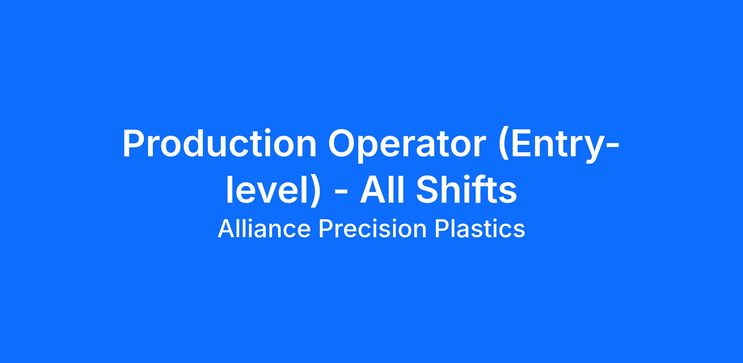 Entry Level Machine Operator, Manufacturing, Assembly, Plastic molding, Overnight