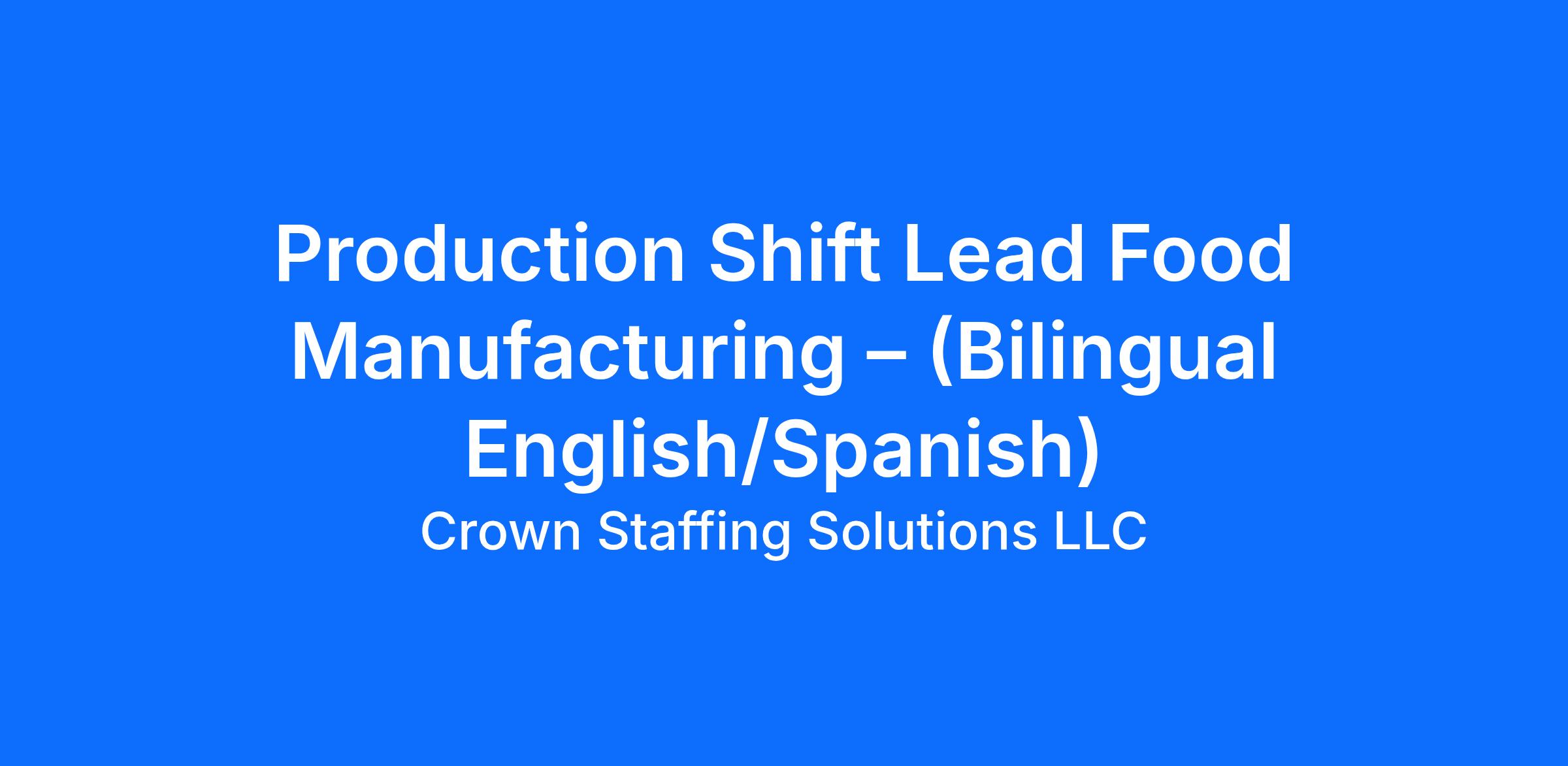 Job Title: Production Shift Lead Food Manufacturing – (Bilingual English/Spanish)