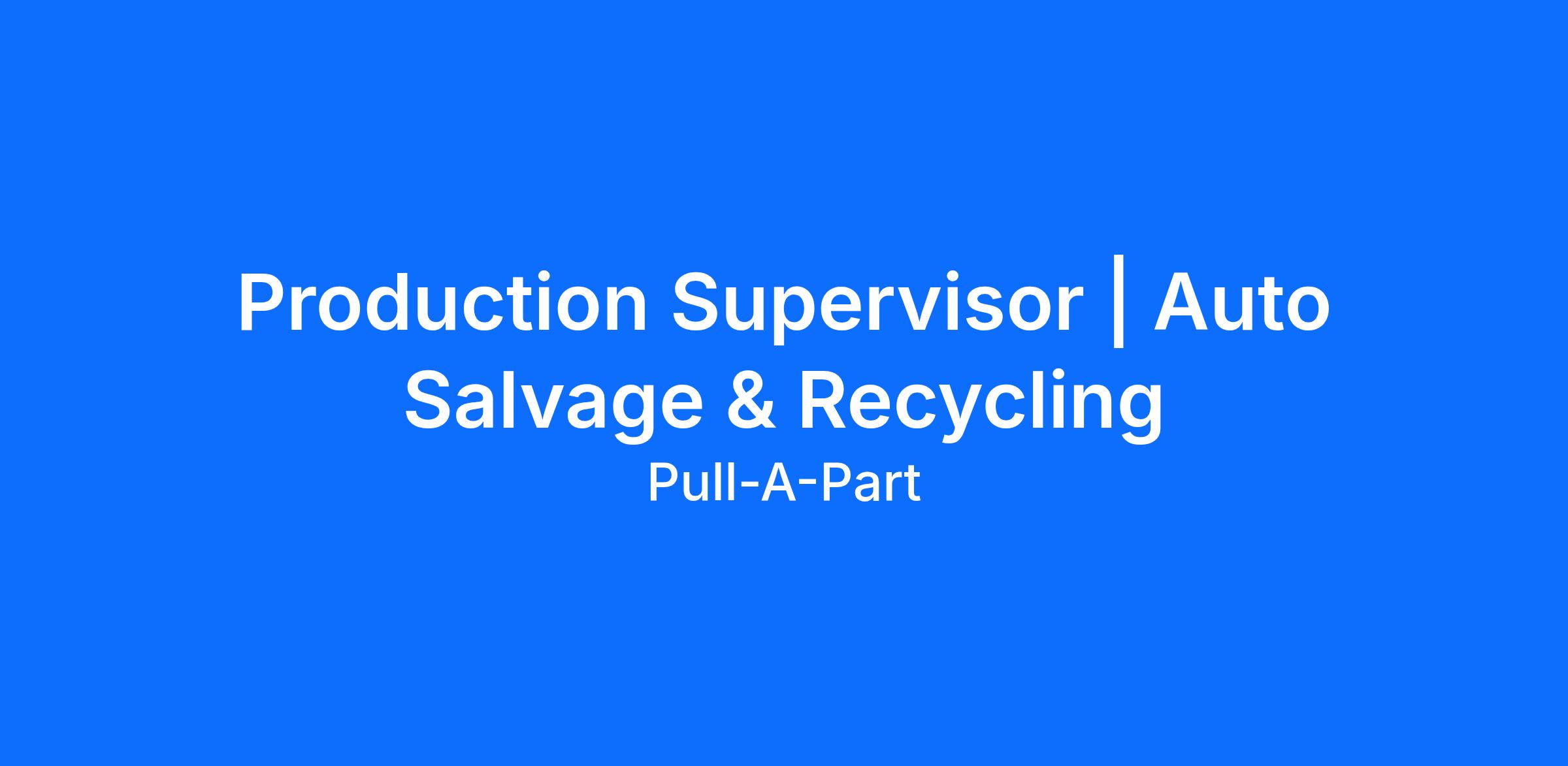As a Production Supervisor, you’ll support the Production Supervisor and Chief in leading a team responsible for automotive salvage, recycling operations, and facility upkeep. You’ll ensure safety, efficiency, and productivity standards are met while fostering a culture of teamwork and continuous improvement.