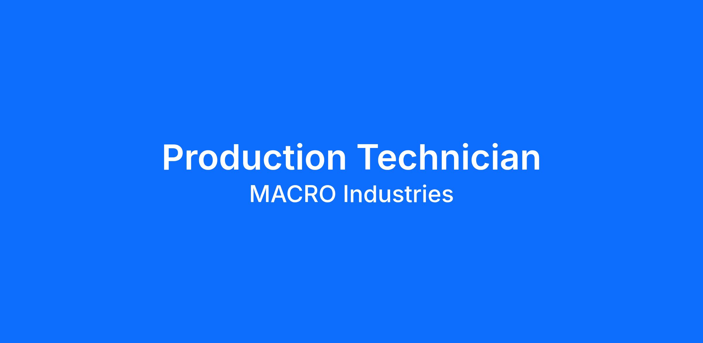 About Us: MACRO Industries, Inc. is a 100% Employee-Owned Company. At MACRO employee-owners are ultimately the beneficiary of their hard work. Our profits do not go to the stock market or a private equity group—they come back to our employee-owners in the form of increased share value that you can cash in on in retirement. This is the most significant and sustainable differentiation we have from most companies.