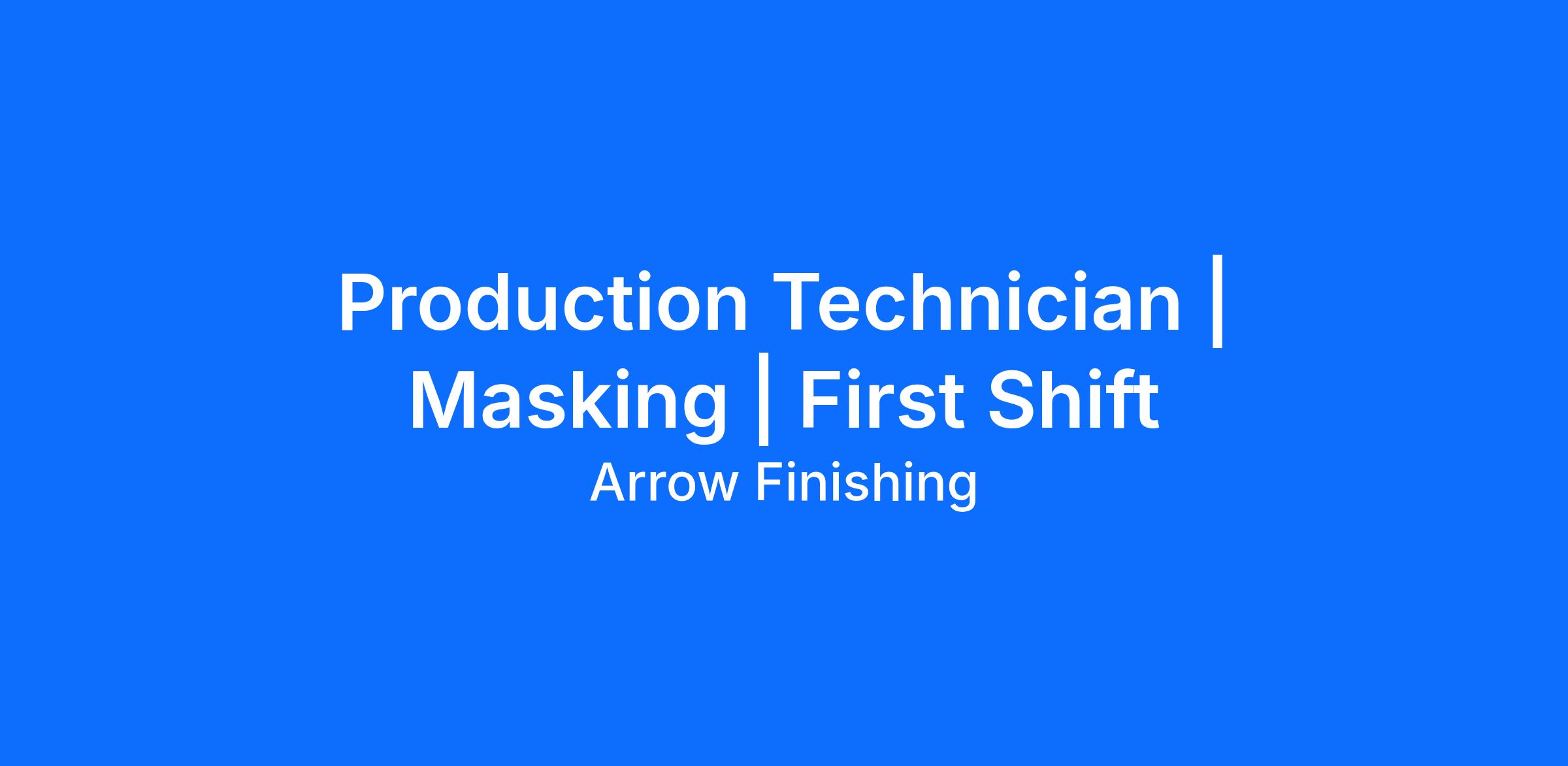The Production Technician for Masking performs the tasks related to the masking, unmasking and packaging of parts for a variety of organizational manufacturing needs in a safe and organized manner.