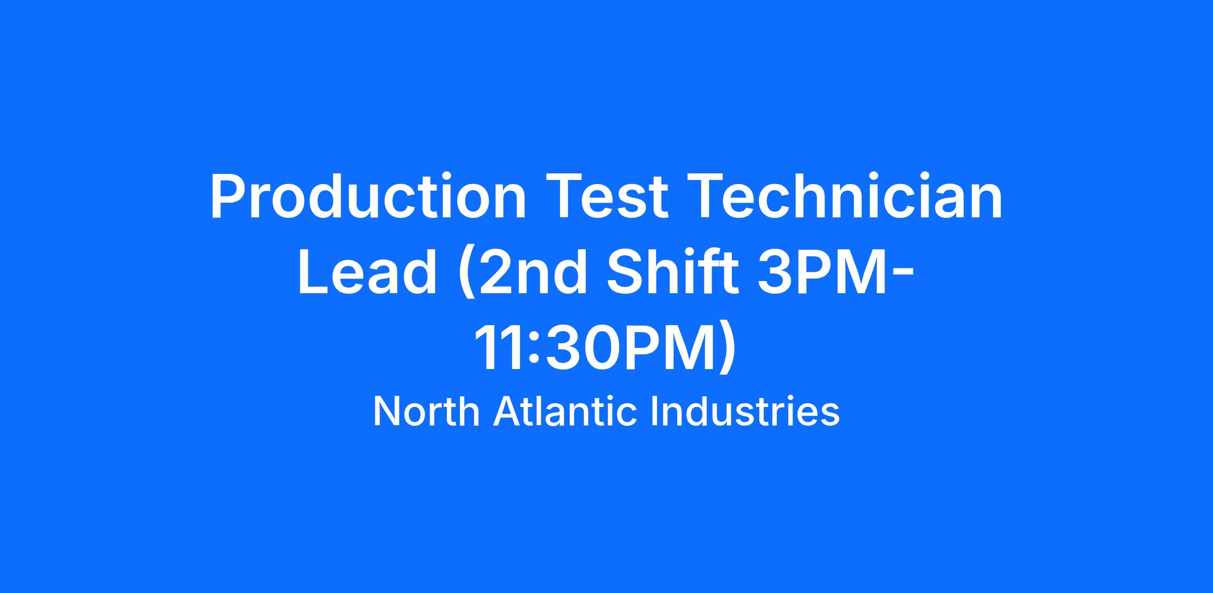 As the 2nd Shift Production Test Lead, you oversee testing operations for Power and I/O electronic products, ensuring that all test processes are executed accurately and efficiently during second shift. You are responsible for supporting test setups, troubleshooting issues, monitoring production floor activity, and ensuring a smooth handoff between first and second shift. Your leadership supports North Atlantic Industries’ mission to deliver rugged, high-reliability electronics for aerospace and defense applications.