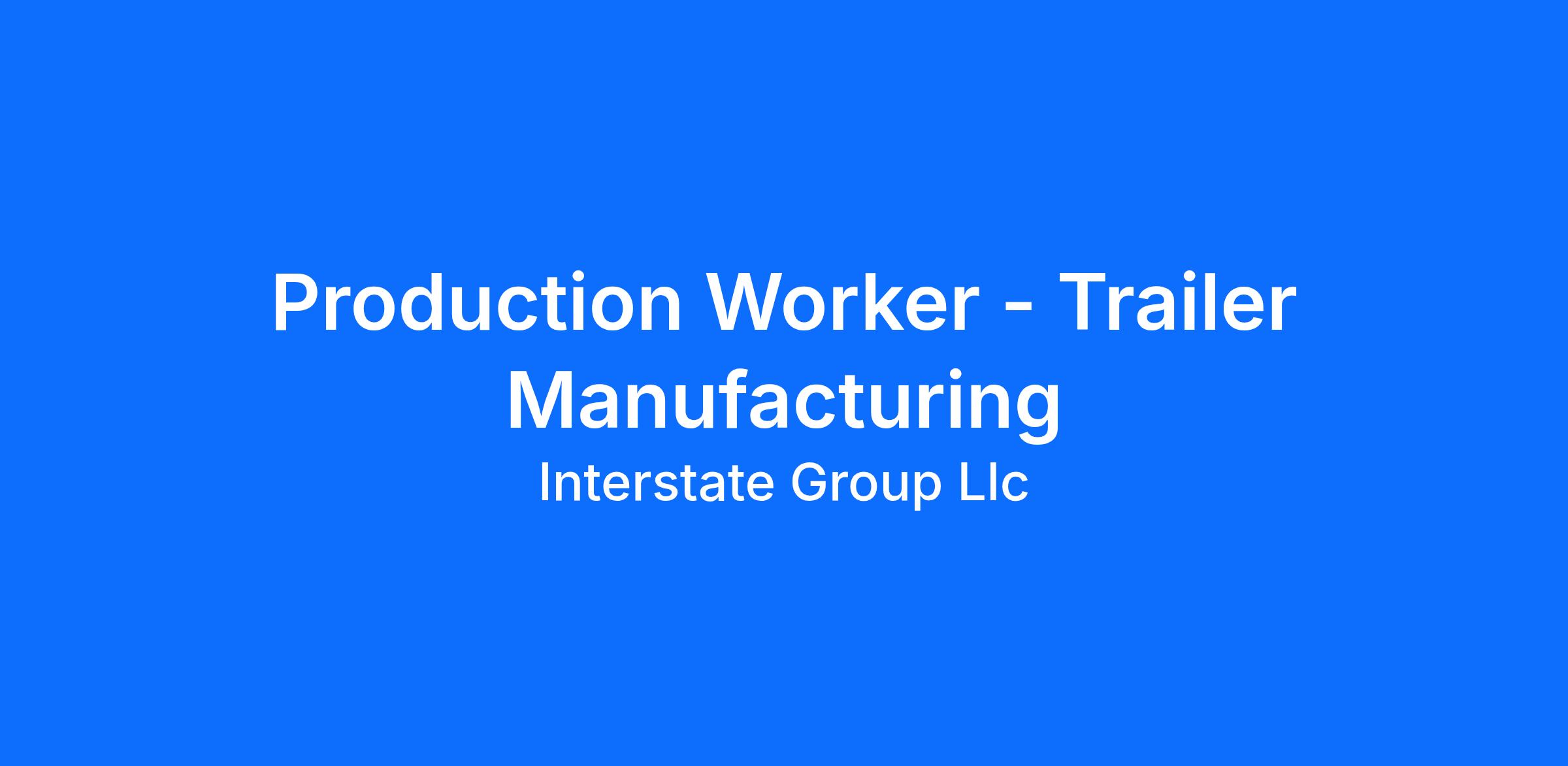 We are hiring dependable, safety-focused Production Workers to join our trailer manufacturing team. This position will be assigned to one of our production departments (Wood, Skin, Prep, Wire, Paint, or Undercoat) and plays an important role in building high-quality trailers.