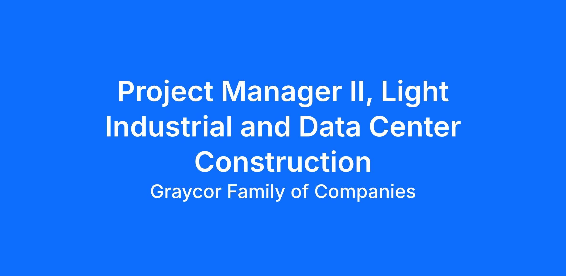 Project Manager II with Graycor Construction Company, you will have the authority to drive successful project results, moving your projects from preconstruction through final closeout in the safest manner possible while maintaining the highest quality standards. The Project Manager will primarily focus within the commercial and light industrial markets, including large distribution centers and general manufacturing projects.