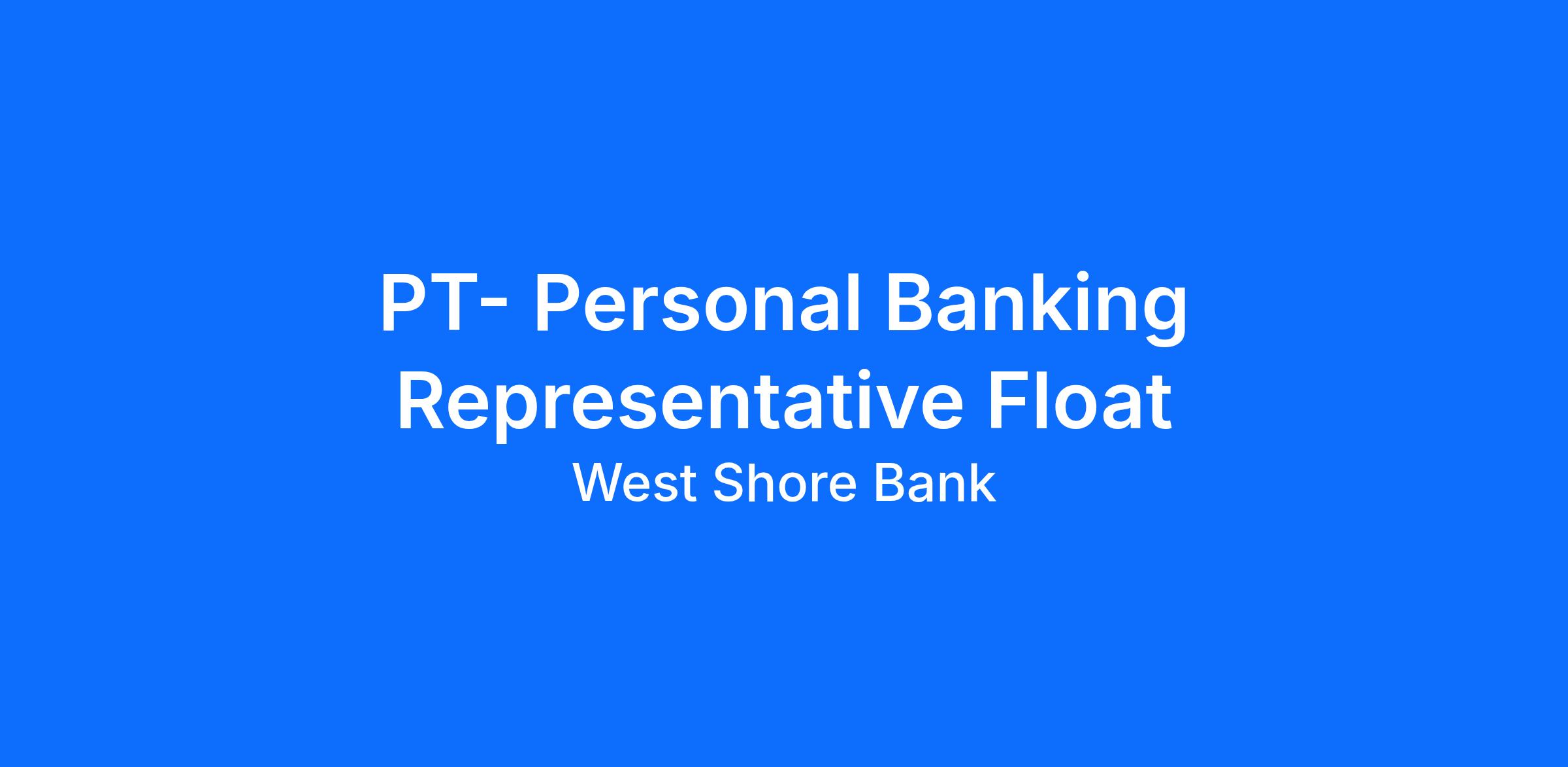 Do you have a passion for service and a drive to succeed? West Shore Bank is a growing independent bank and is accepting applications for a PT Personal Banking Representative in our Ludington Market.