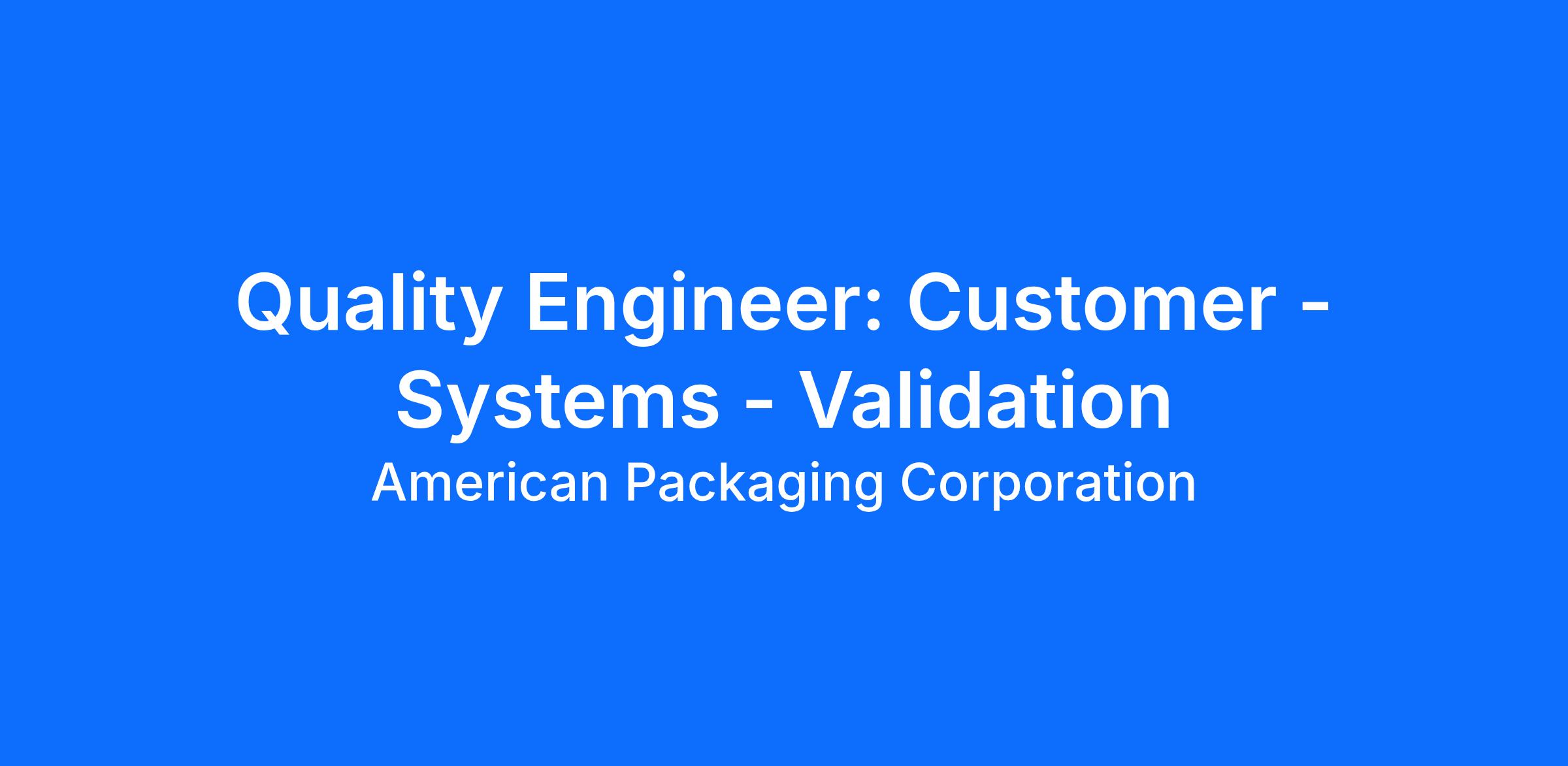 Customer & Validation - Bachelor's degree in science, mathematics, or engineering from four-year college or university, and two years related experience and/or training; or equivalent combination of education and experience. ASQ certification is a preferred.