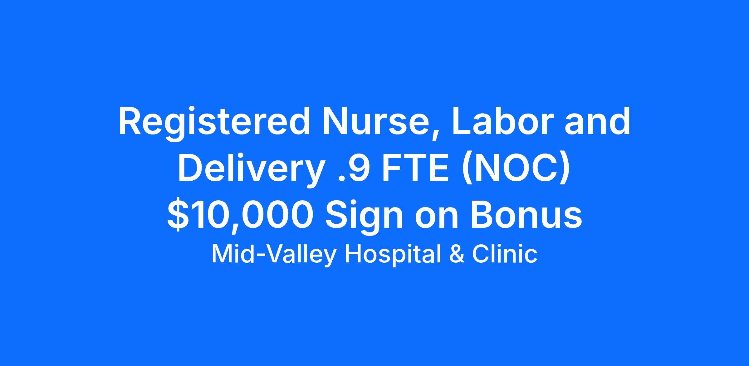 Registered Nurse, Labor and Delivery .9 FTE (NOC) $10,000 Sign on Bonus
