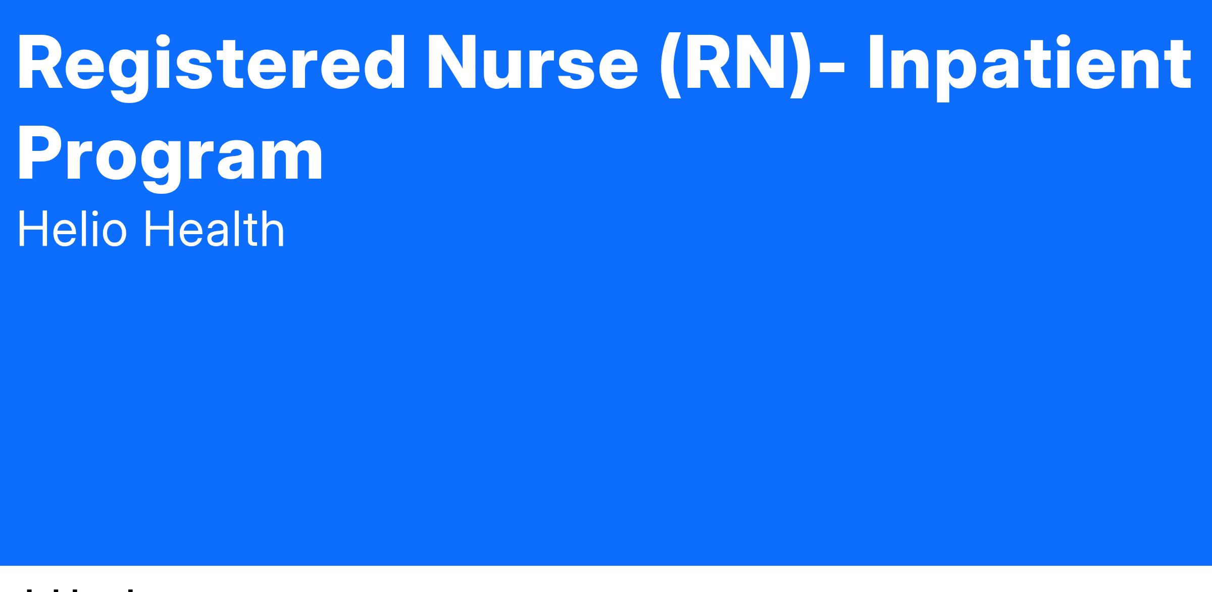 Helio Health is on a mission to treat and promote recovery from the effects of substance use, mental health disorders, and other behavioral healthcare issues. In order to support our mission, Helio Health is seeking a Registered Nurse (RN) to work on a Full-Time basis for our Rochester Inpatient Program. The Registered Nurse (RN) will provide comprehensive treatment to those affected by substance use, mental health, and other behavioral health disorders. The schedule will be days, evenings, or overnights with rotating weekends.
