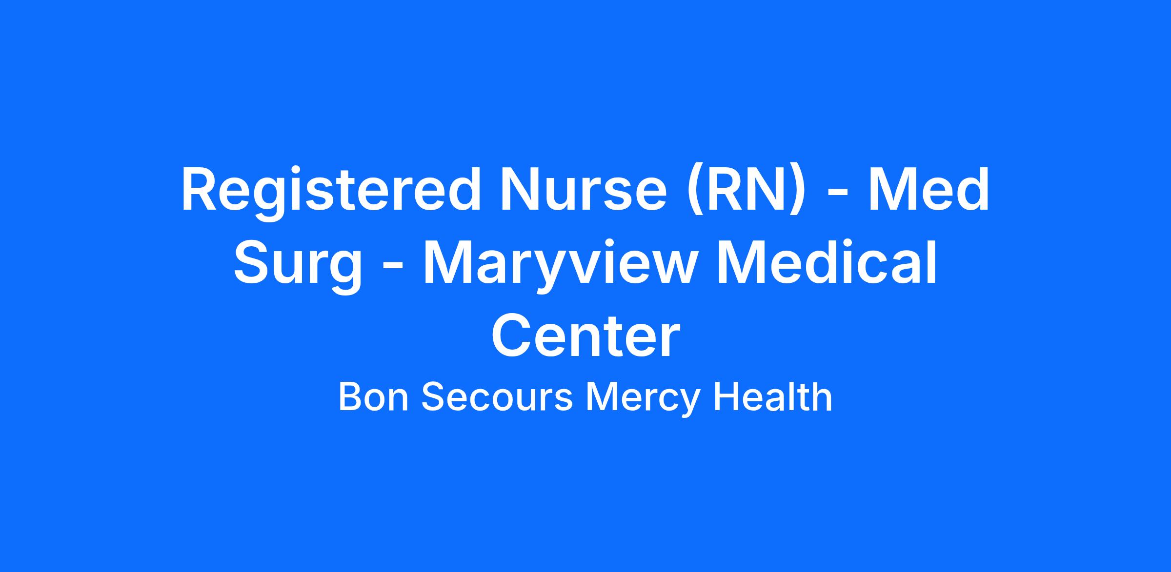 Registered Nurse (RN) – Med-Surg – Maryview Medical Center