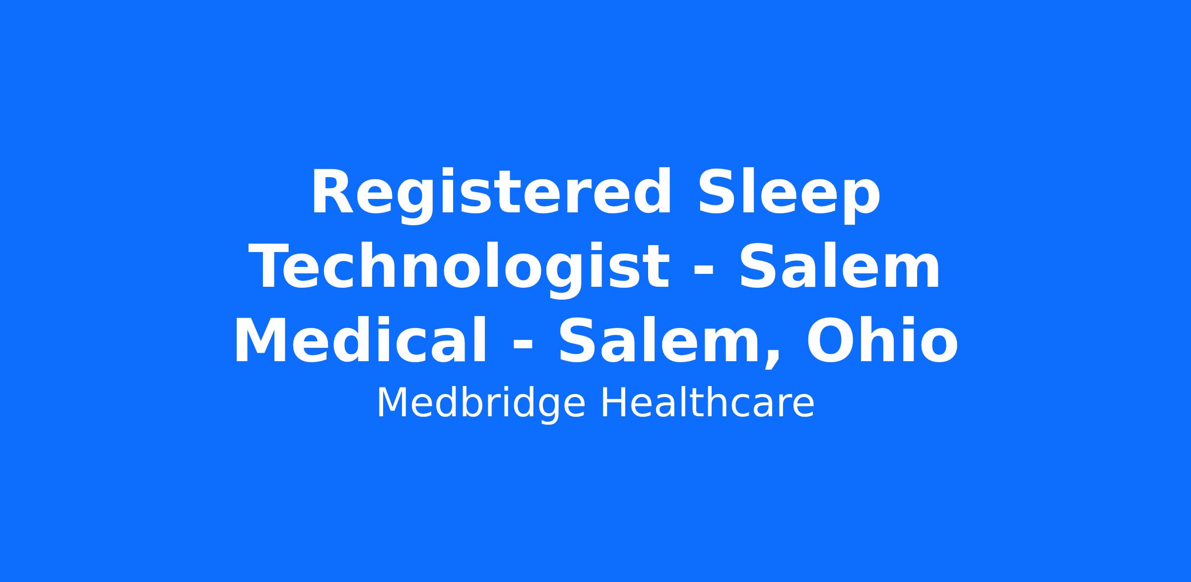 MedBridge Healthcare is seeking PRN experienced RPSGTs to work at our sleep lab in Salem, Ohio. This position will provide sleep services on a as needed basis. Competitive hourly rates available, depending on experience.