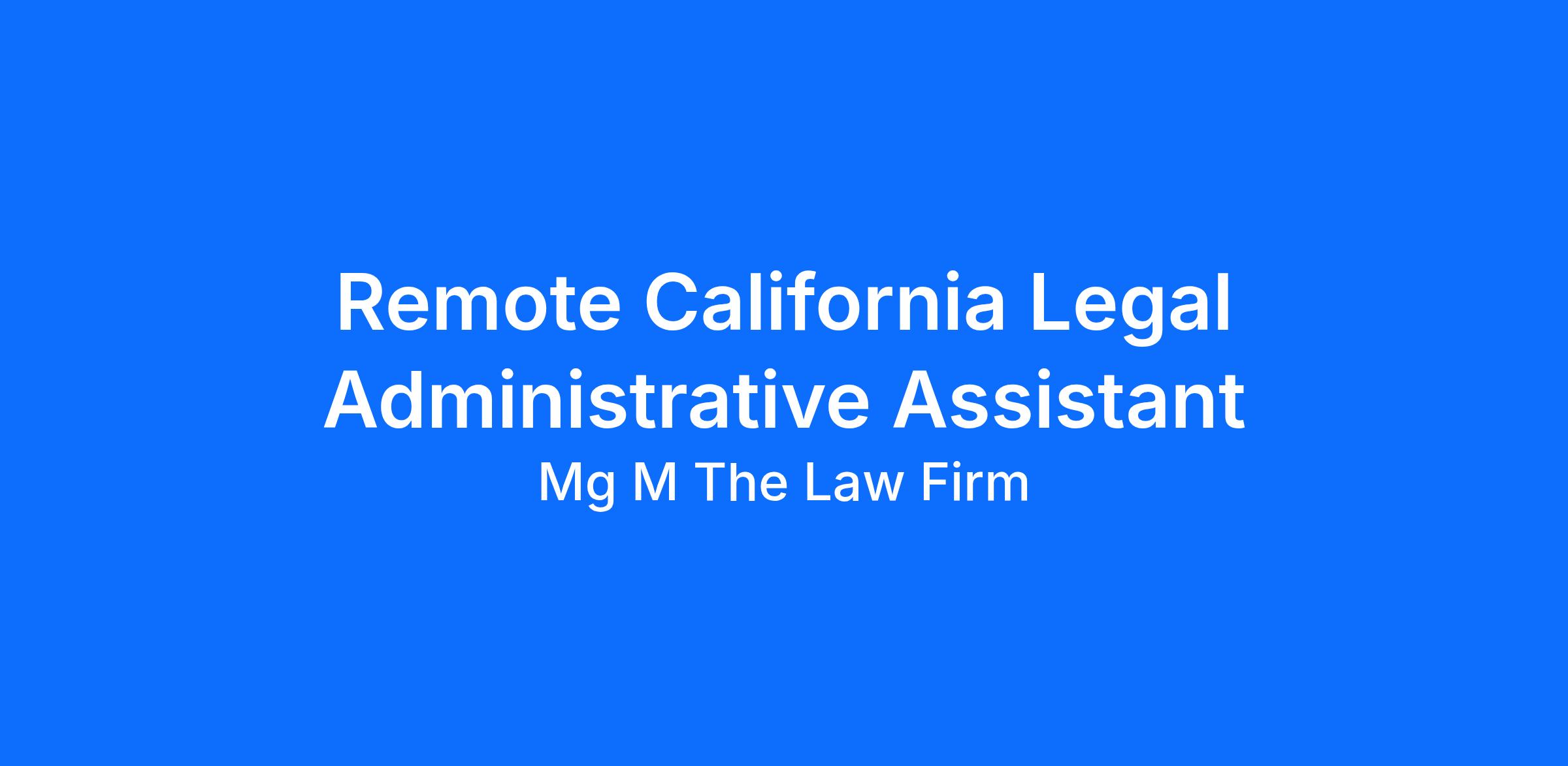 MG+M The Law Firm (MG+M) has an immediate opening for a Legal Administrative Assistant to support our California offices. This position requires the ability to work Pacific Time Zone business hours (9:00 am to 5:00 pm) on a remote basis. Experience handling California cases is a plus, though not required.