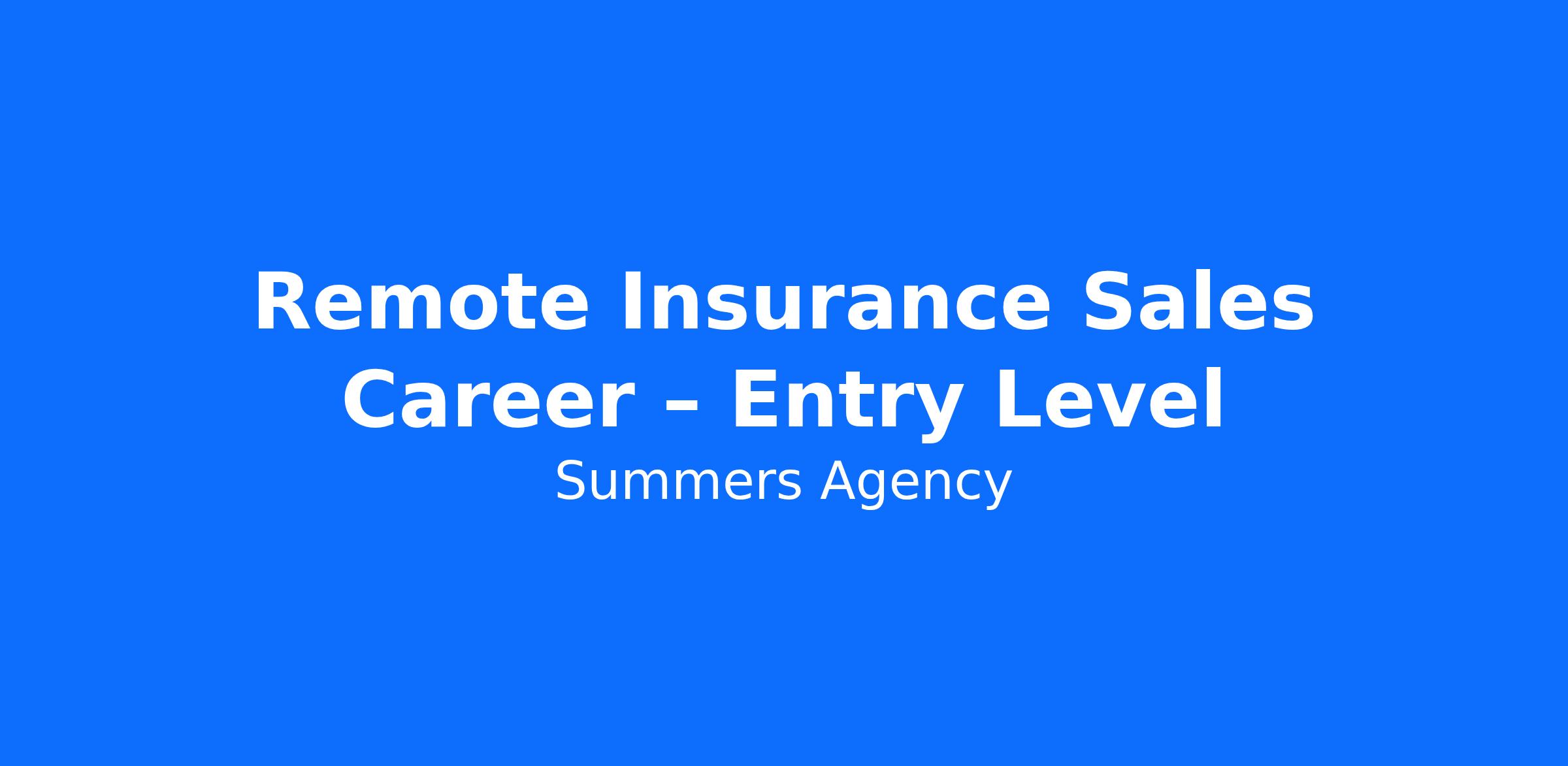 Remote Insurance Sales Career – Entry Level