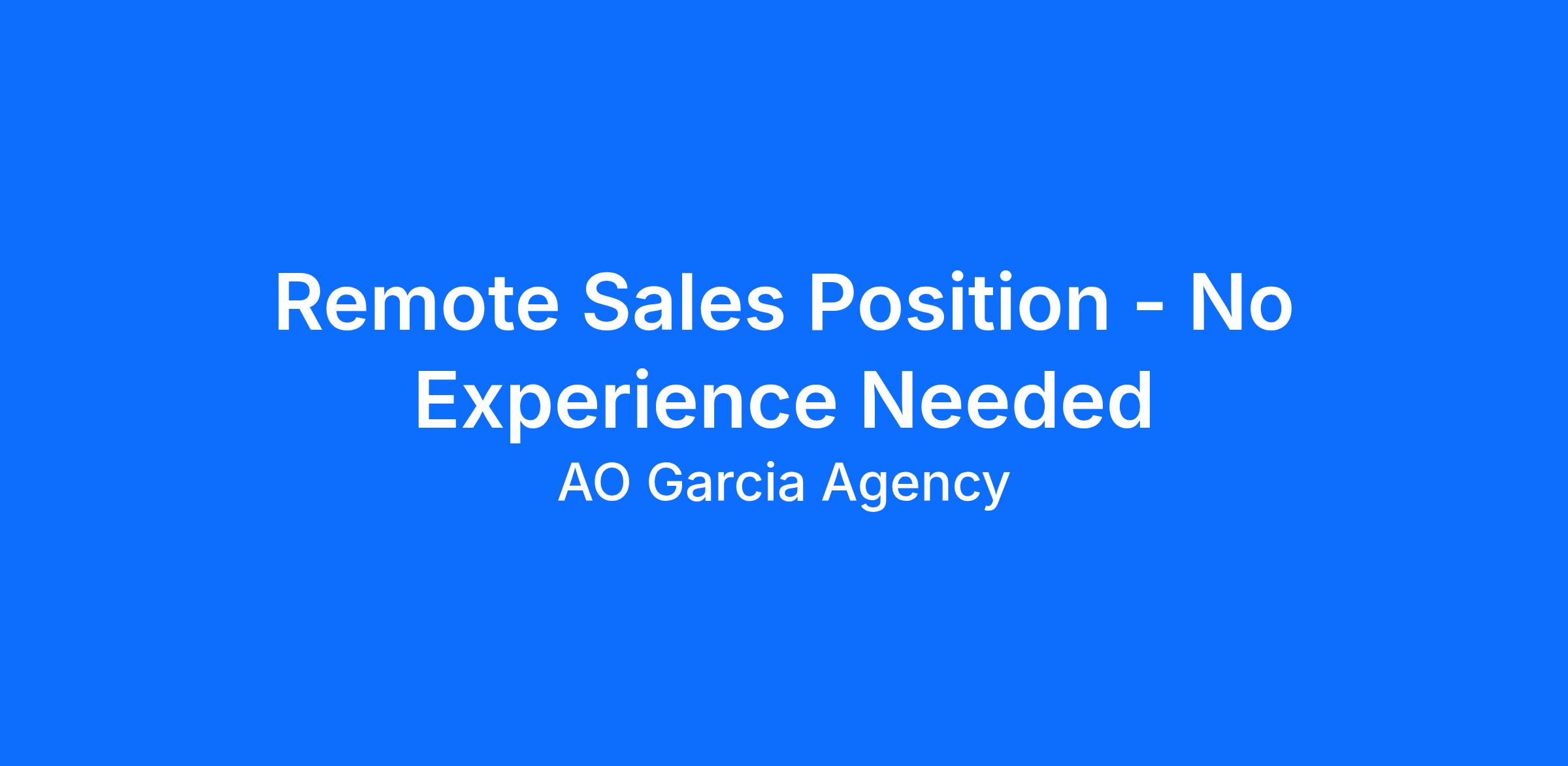 Remote sales opportunity. Entry-level applicants welcome. Training provided. Commission-based income.