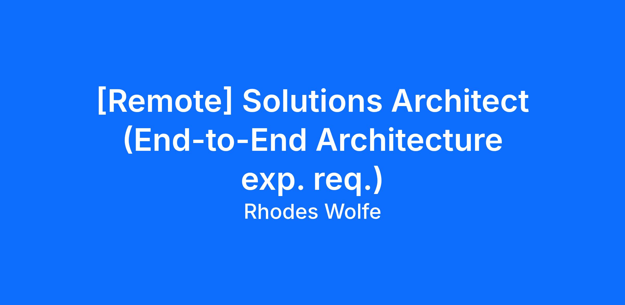 [Remote] Solutions Architect (End-to-End Architecture exp. req.)